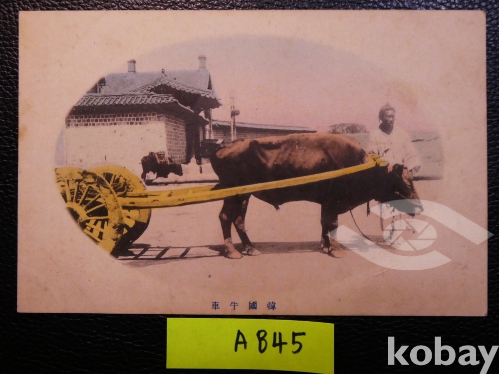 ▣근대한국엽서(진본): 대한제국기, 소가 끄는 달구지, 소달구지, 수채색 엽서로 손으로 직접 색을 칠함/1매.