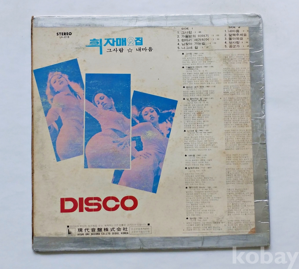 | 자켓상태 | EX : 약간의 마모, 모서리 찢김 존재 | 음반상태 | NM : 개봉했으나 미사용급, 스크래치 없음 | 발매정보 | 알수없음 | 가사지여부 | 무 |