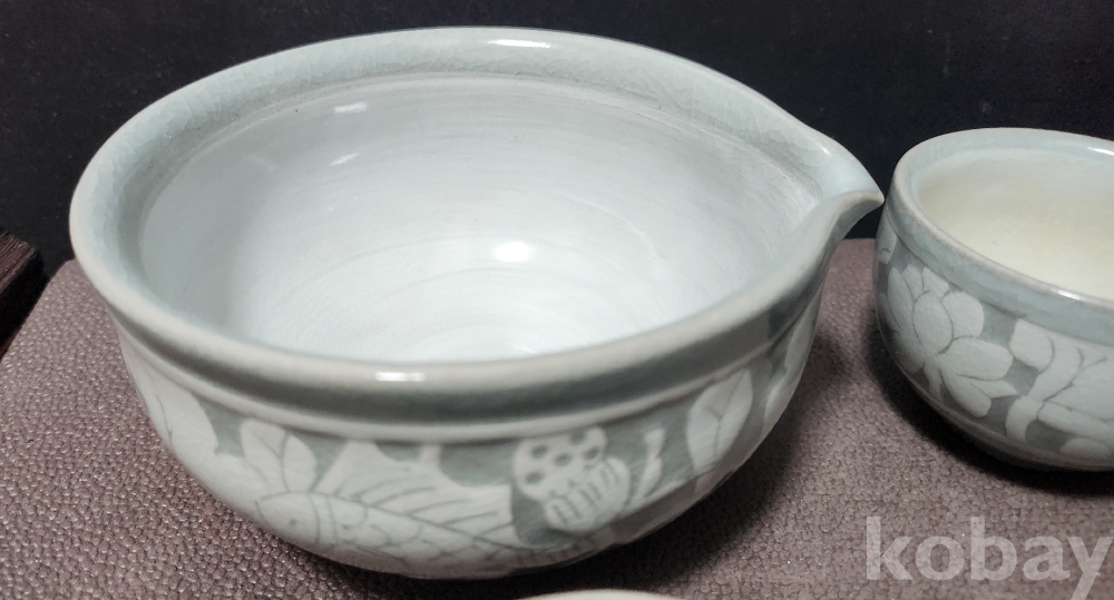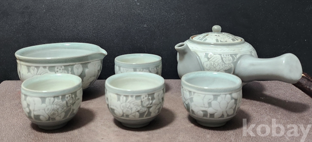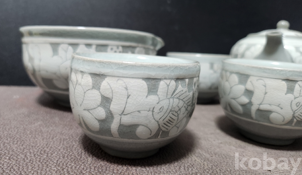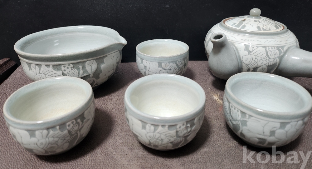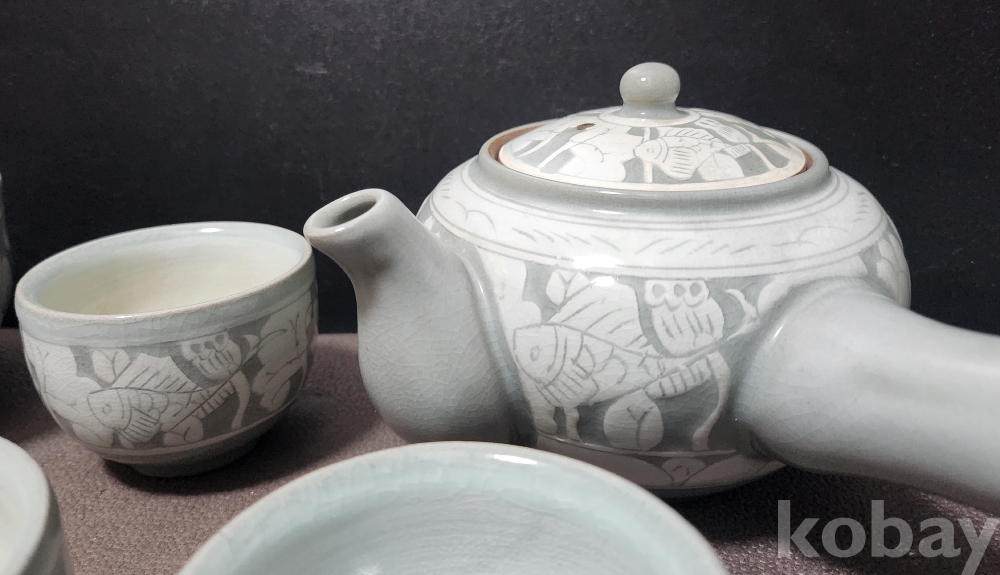 가천요 加川窯 "송기영" 도예가 <분청음각어해문다기 粉靑陰刻魚蟹紋茶器>