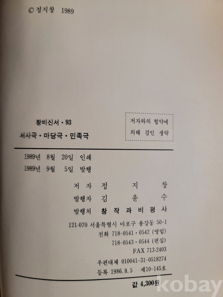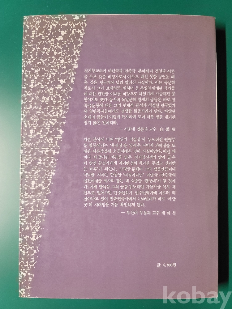 1989년 발간한 평론집 『서사극•마당극•민족극』