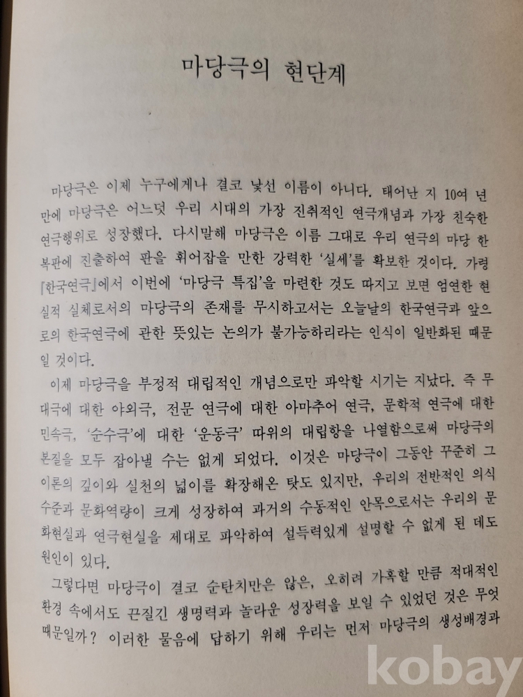 제1부는 마당극을 중심으로 한 민중극•민족연극에 관한 글모음.