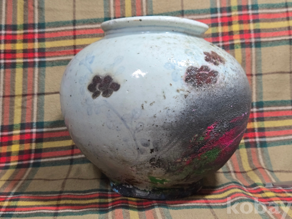 아크릴 물감을 제거한후 전문적인 복원수리, 소장할 만한 가치가 있다고 생각되는 조선후기 지방가마의 걸작품 진사백자.