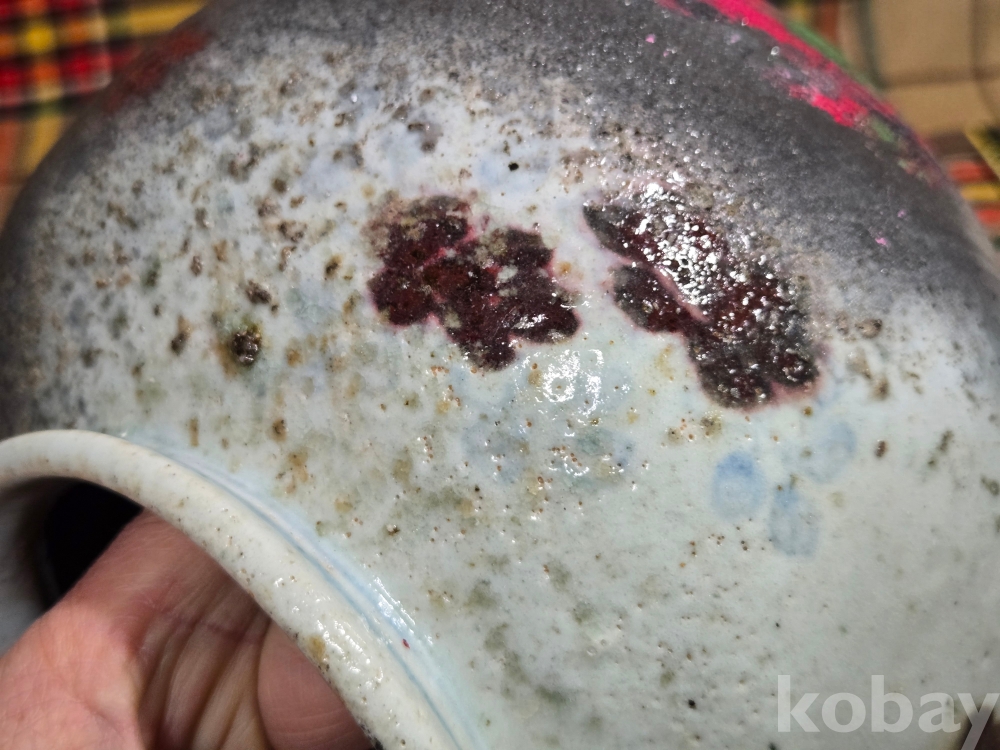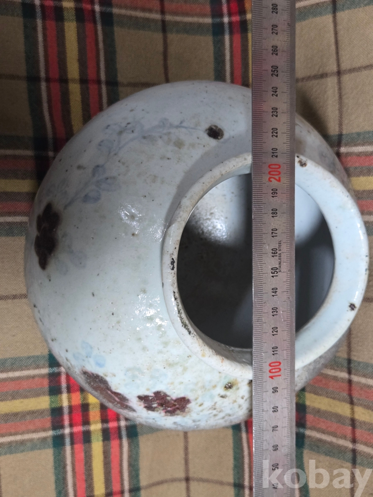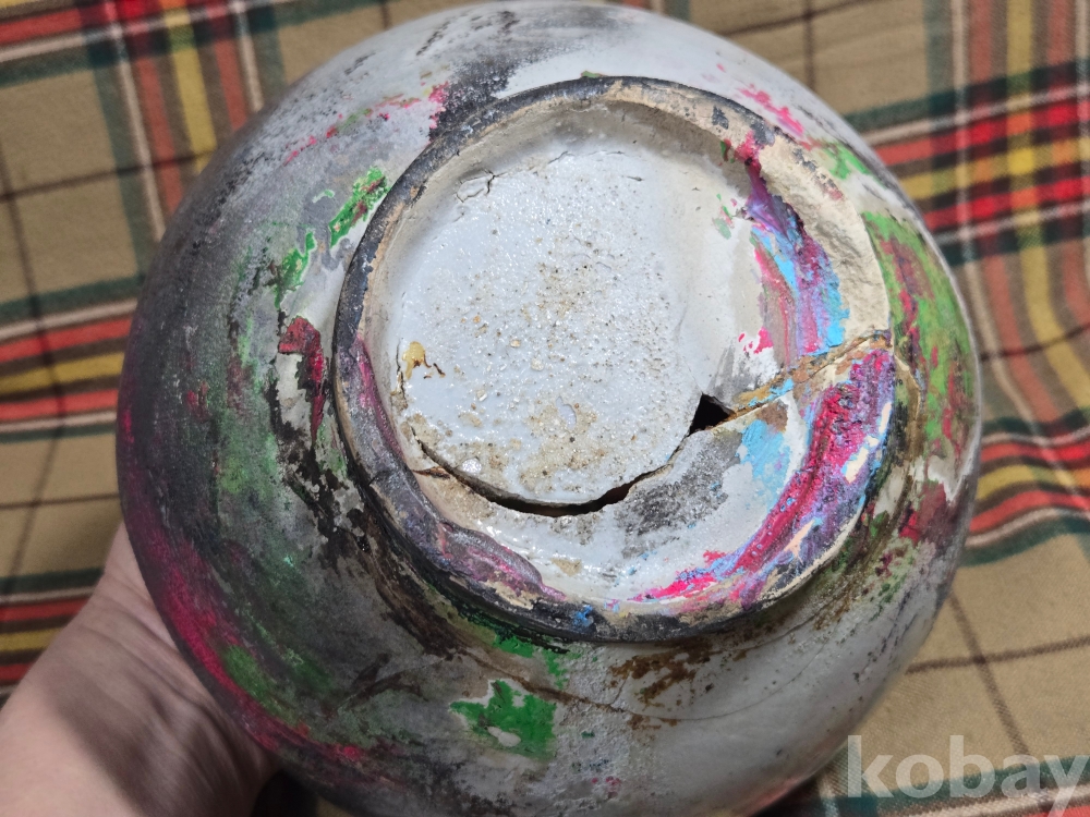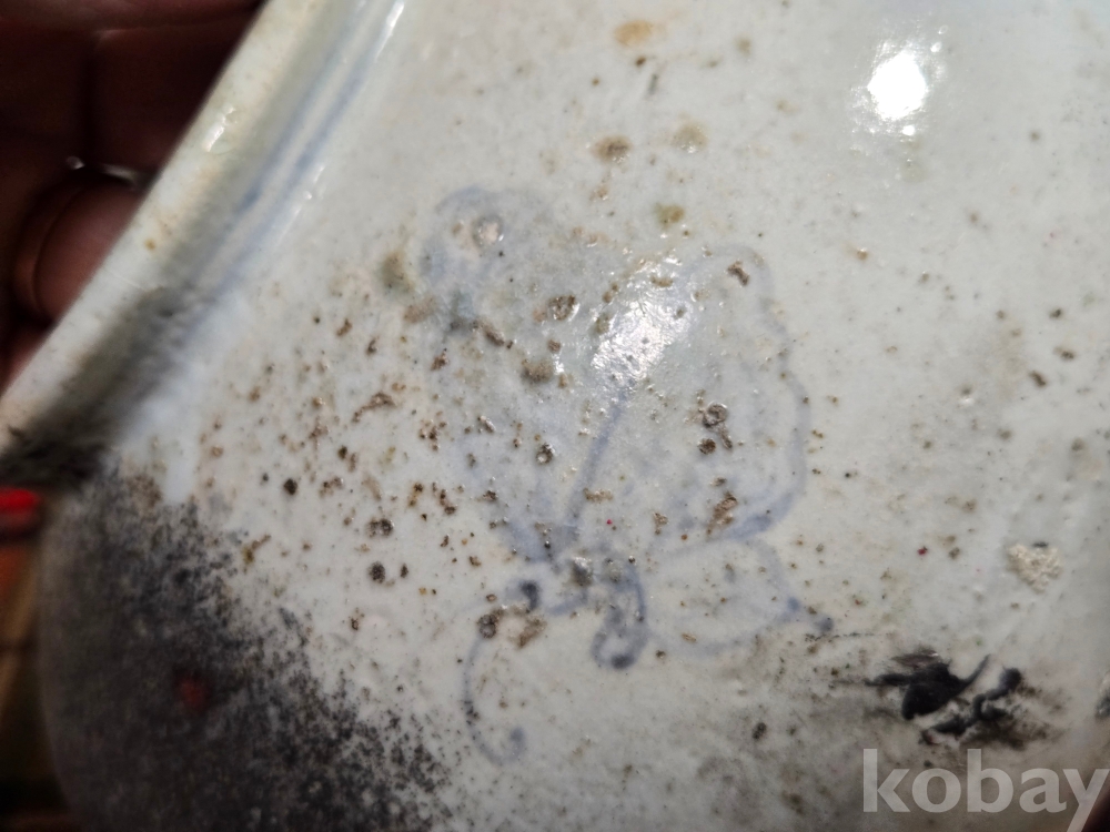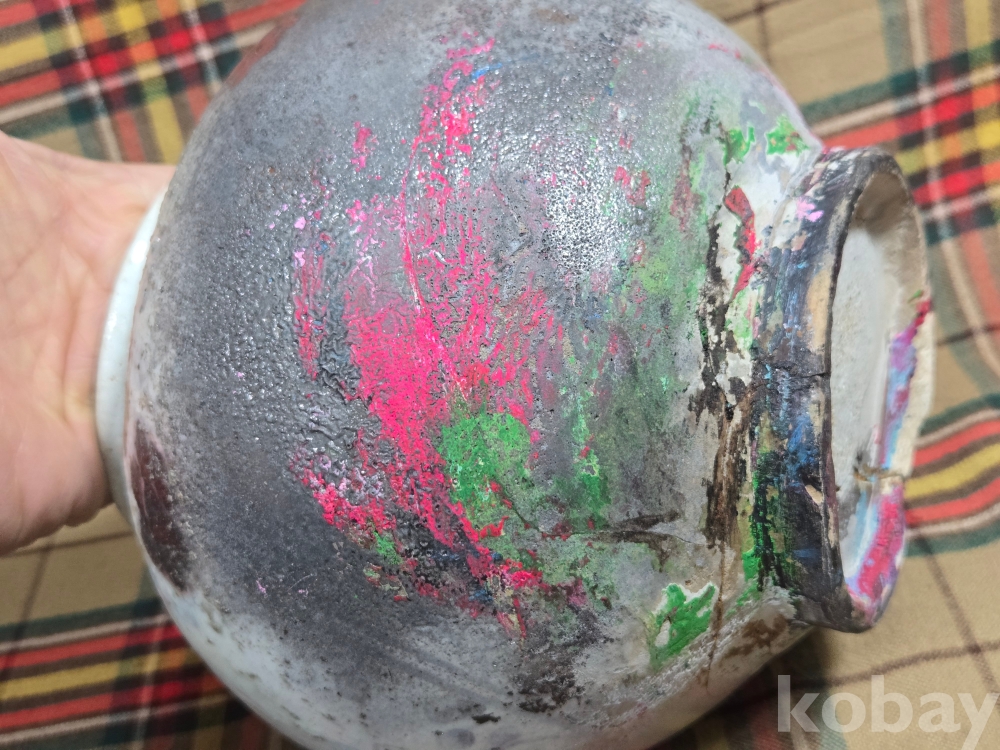 가마에서 소성과정에 불을 맞아 그을린 부분이 있으며 전체적으로 두루 파손수리가 있습니다.