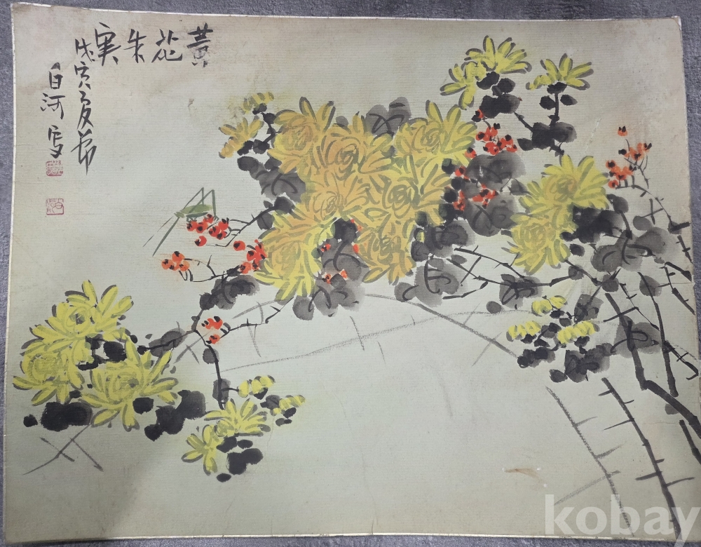 국화와 열매를 소재로 한 수묵채색 그림으로, 자연스러운 필선과 여백의 미가 돋보입니다.