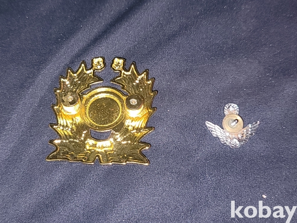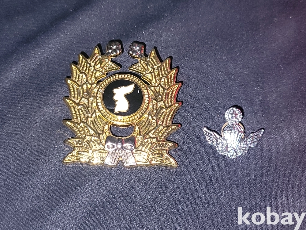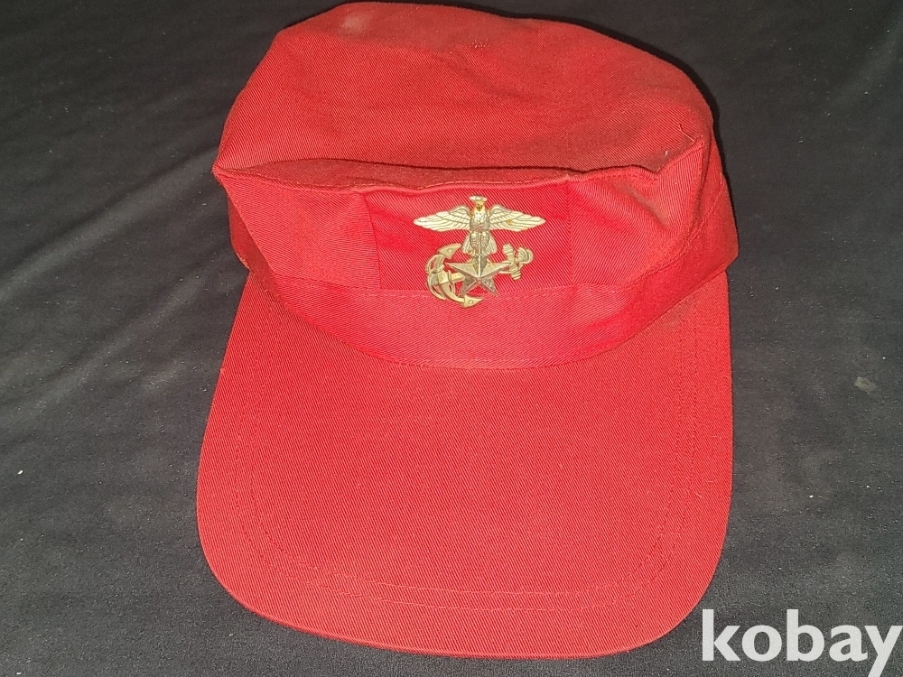 해병대 뱃지가 달린 빨간 해병대 팔각모와 예비군, 공수 뱃지 등 일괄입니다.