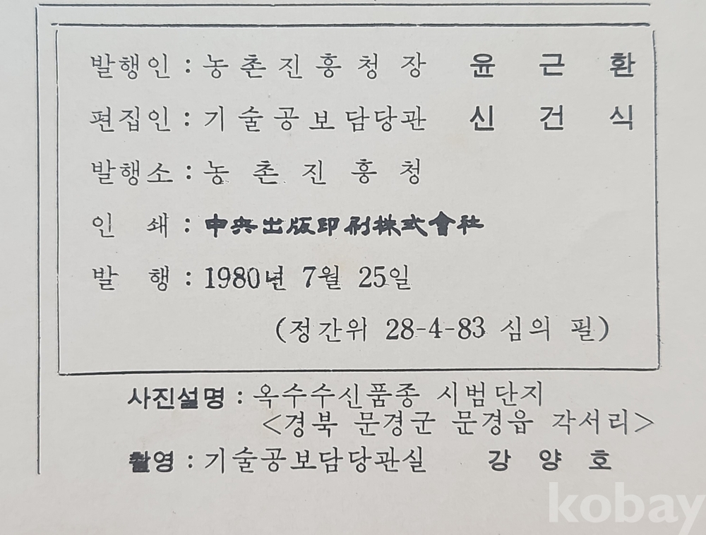 1980년 농촌진흥청에서 발행한 농업기술 8월호입니다,