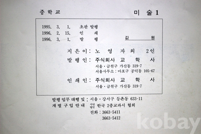 (교과서) 미술 1 : 중학교용 - 1996년. 교학사 발행...