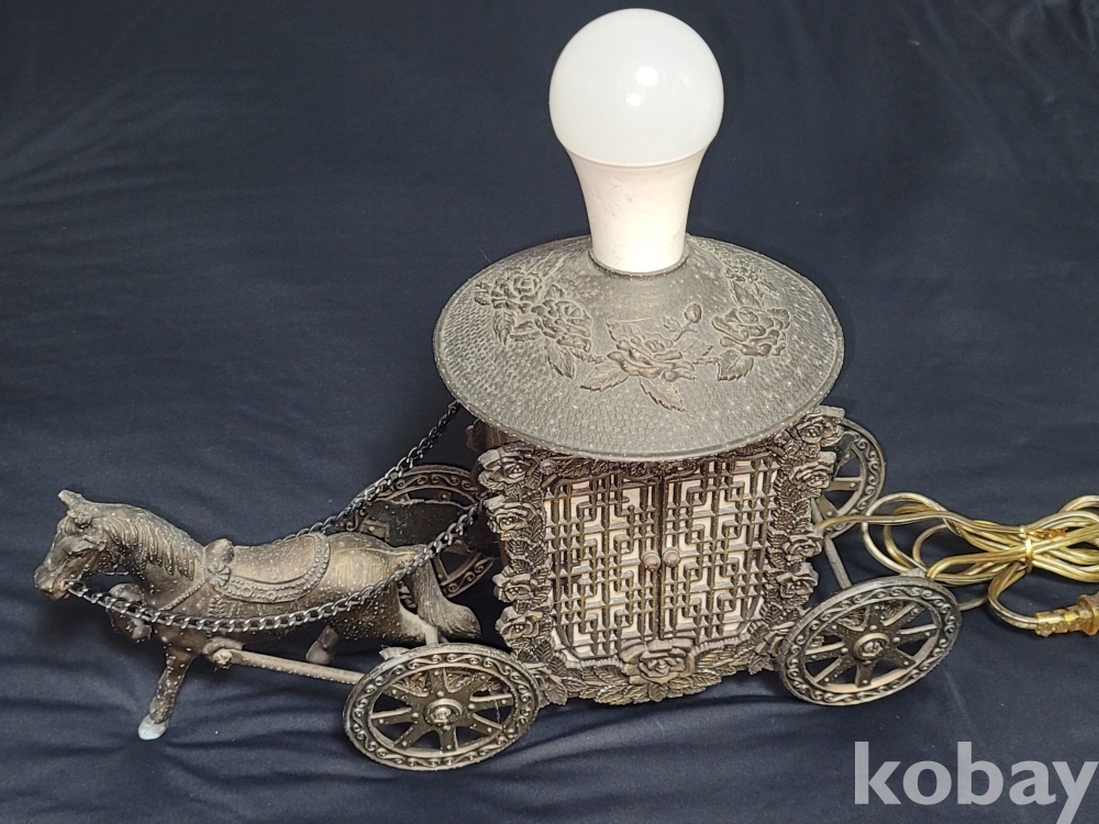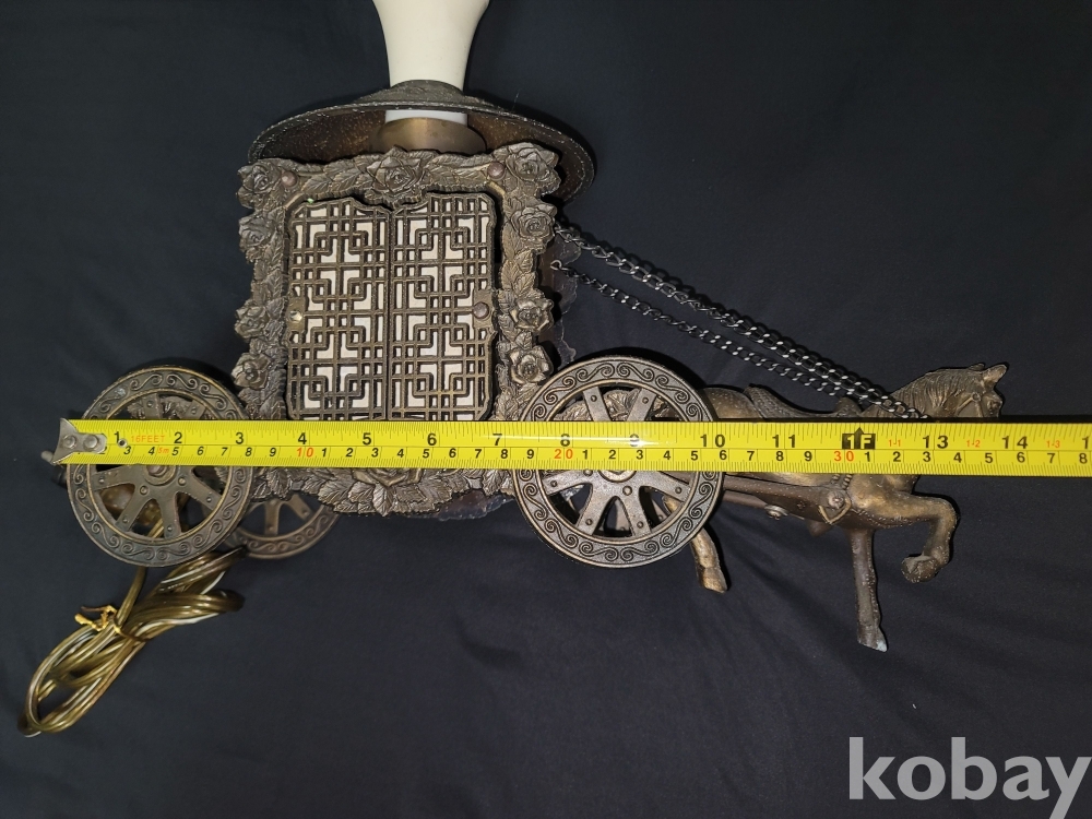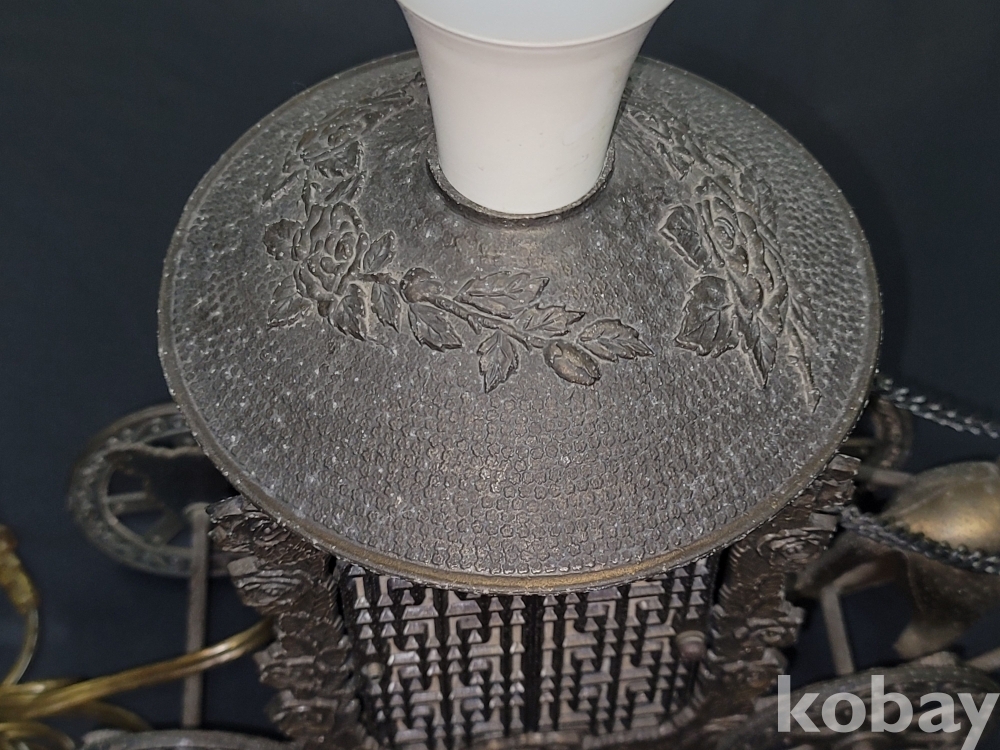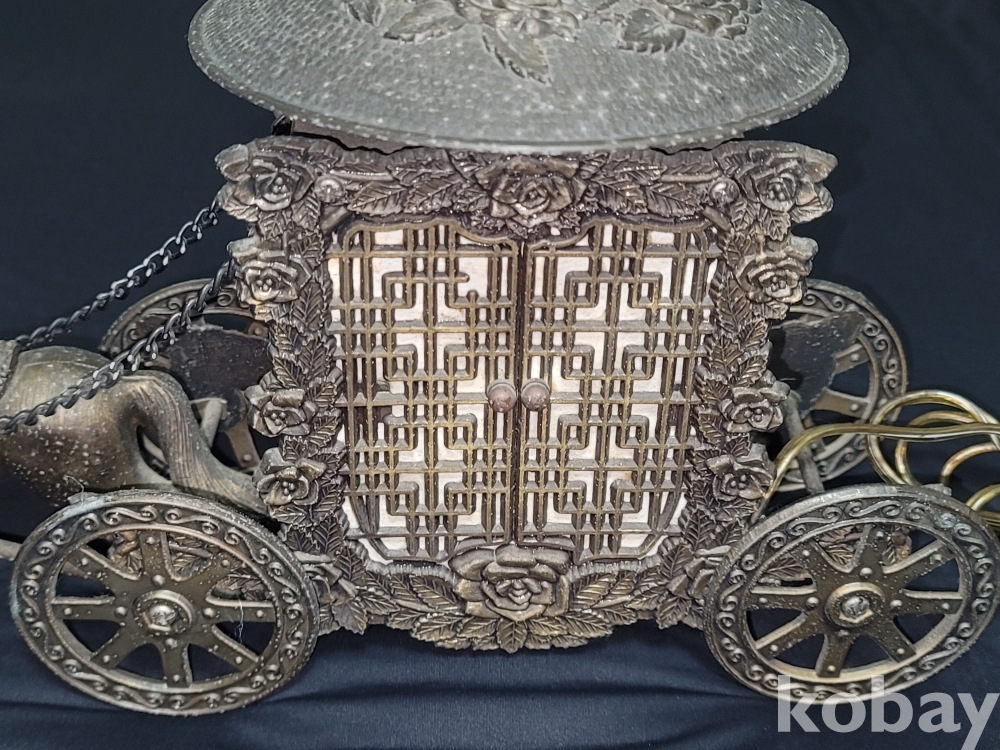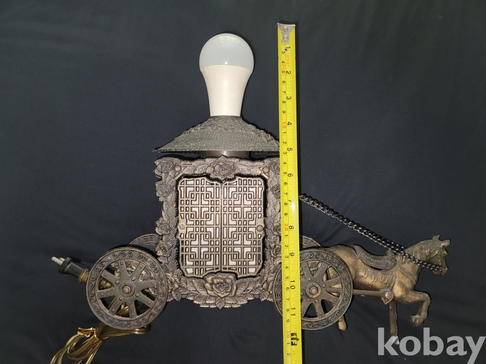 빈티지 세월 감이 느껴지는 마차 모양의 조명 장식입니다.