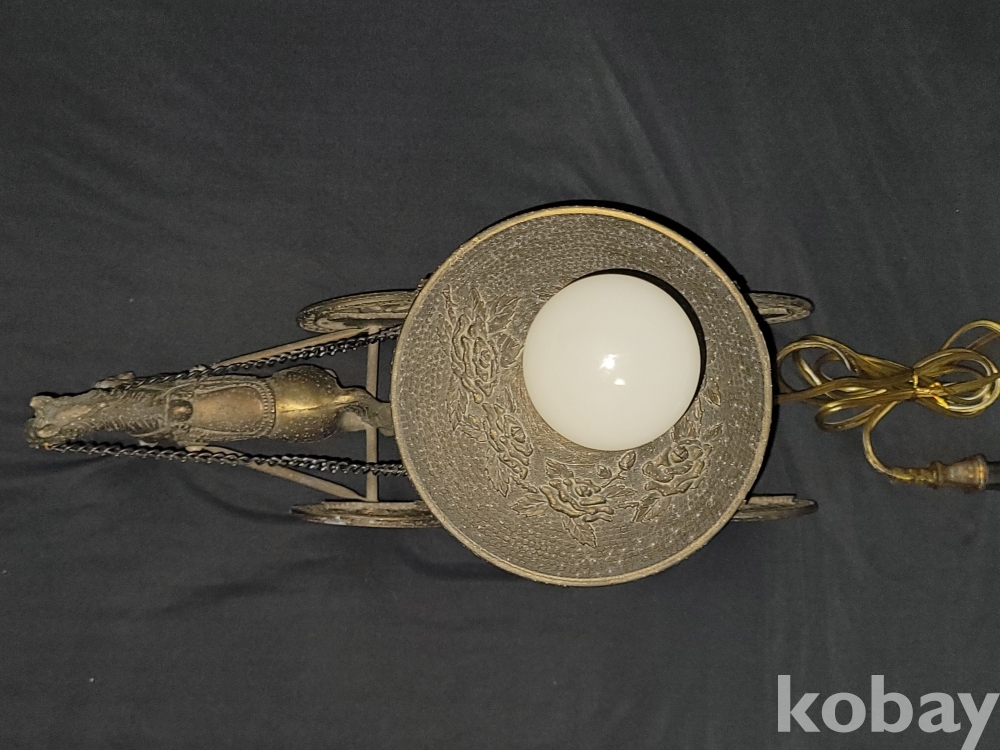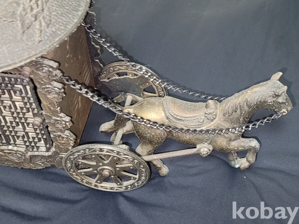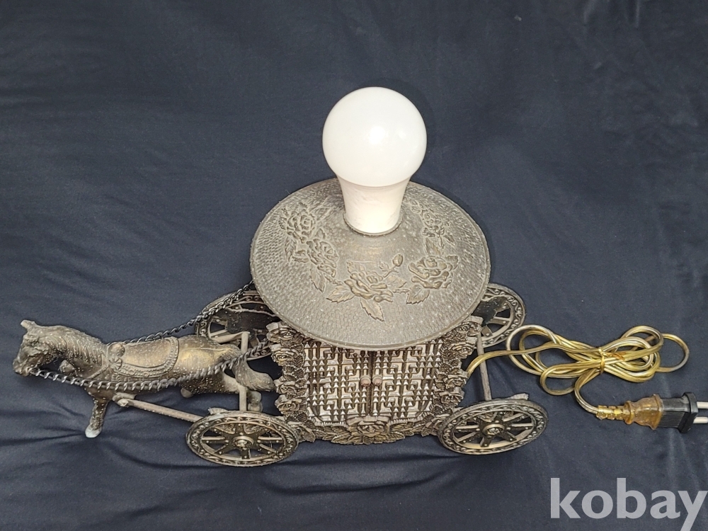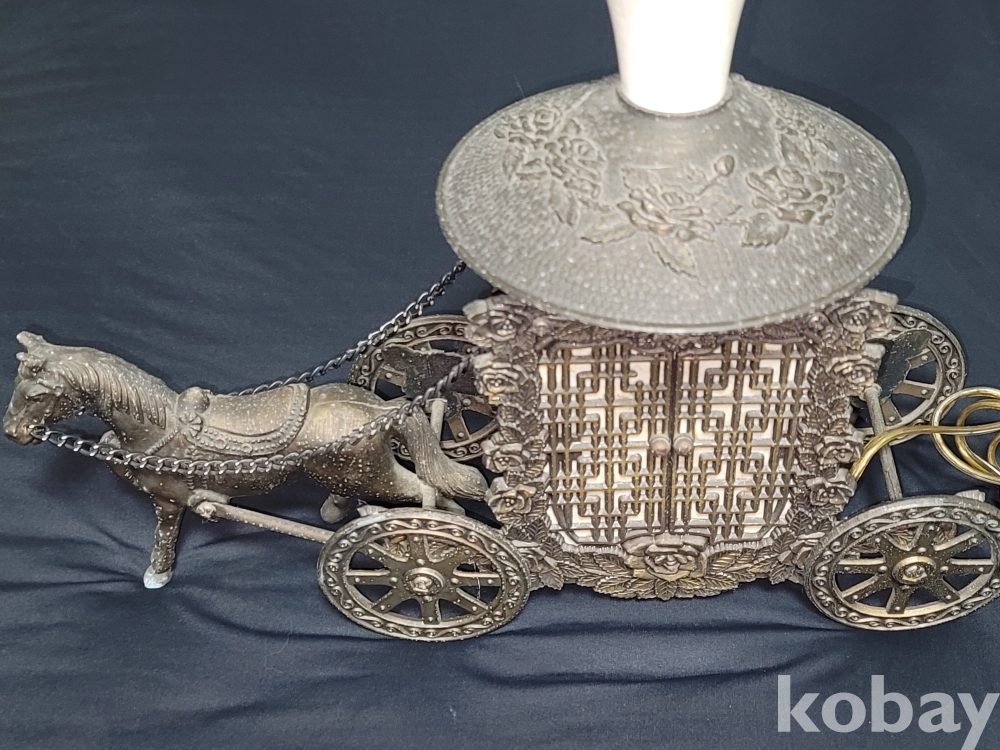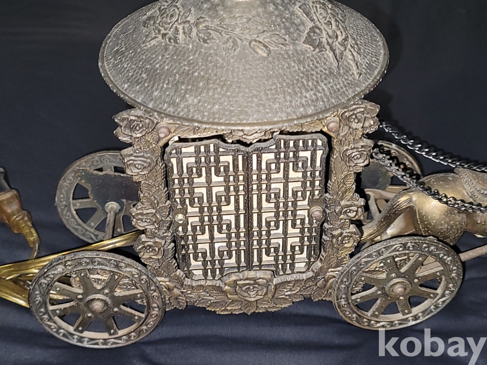 빈티지 세월 감이 느껴지는 마차 모양의 조명 장식입니다.