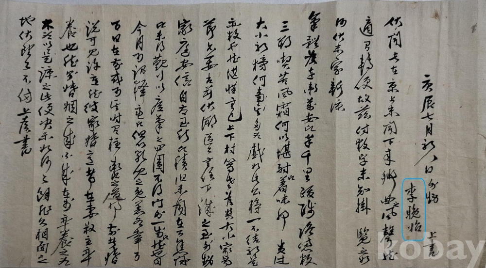 ◈ 경진년 7월 초8일에 보낸 이만시의 친필 간찰.