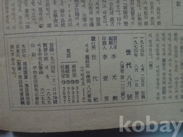 월간 세대 - 한국적 현안문제 10, 이광요의 싱가포 등 (1974년)