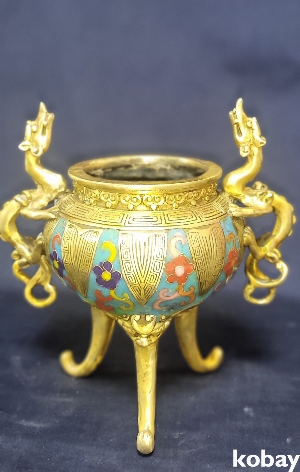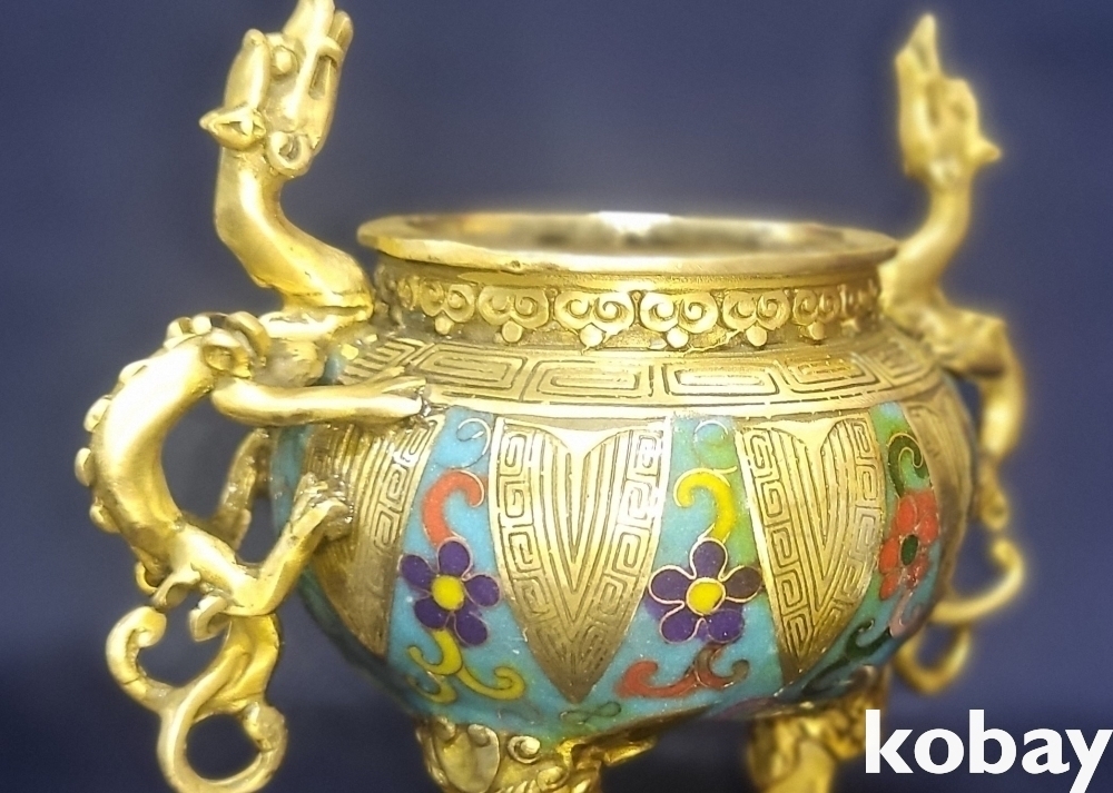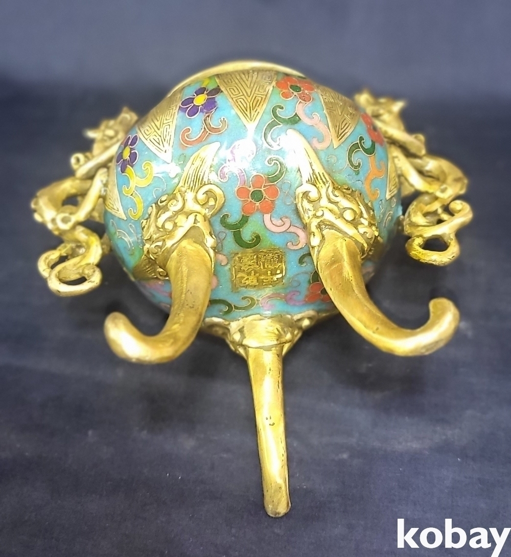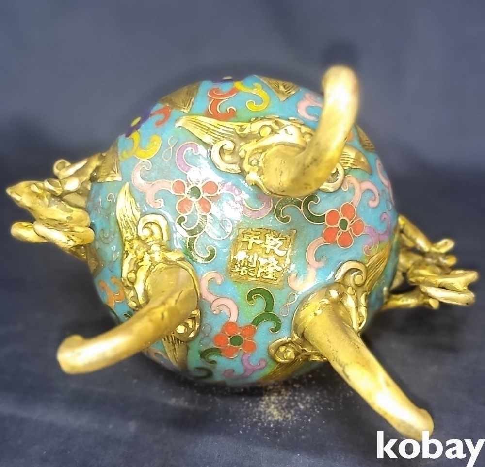 대청건륭 관지 보이는 동태 범랑 화훼 용(龍) 문양 향로입니다,
