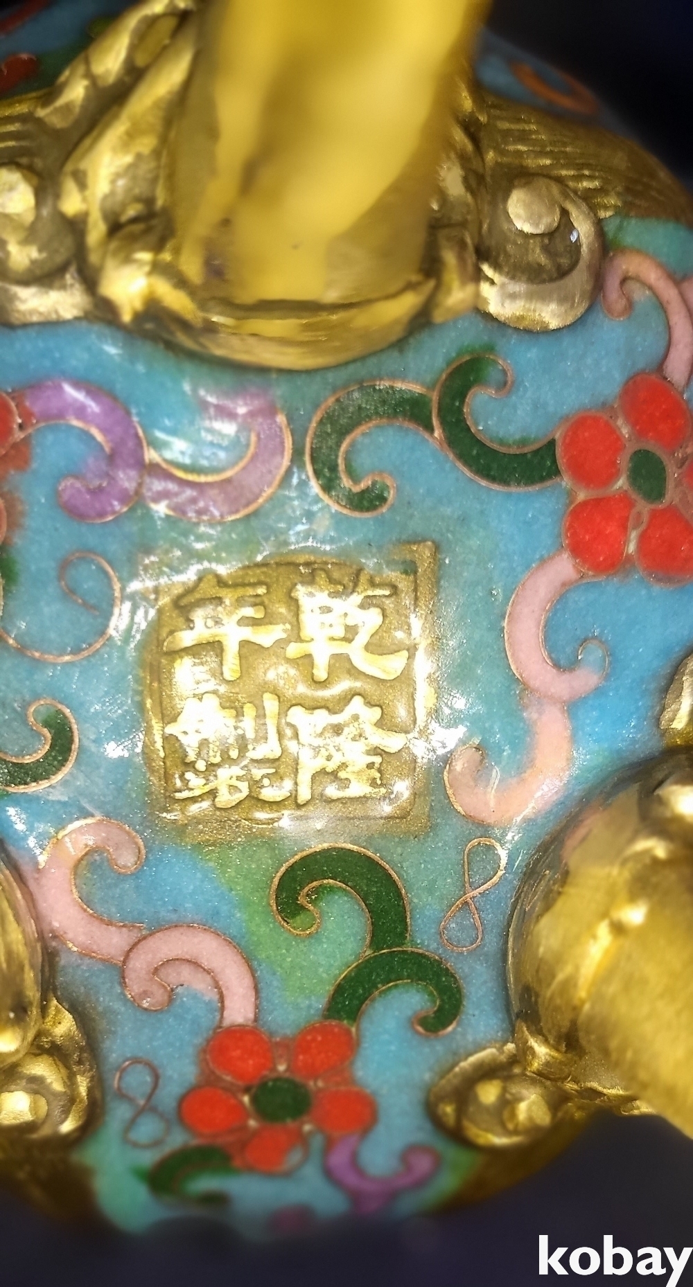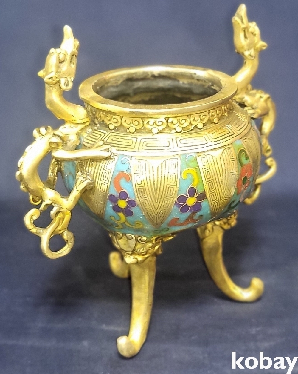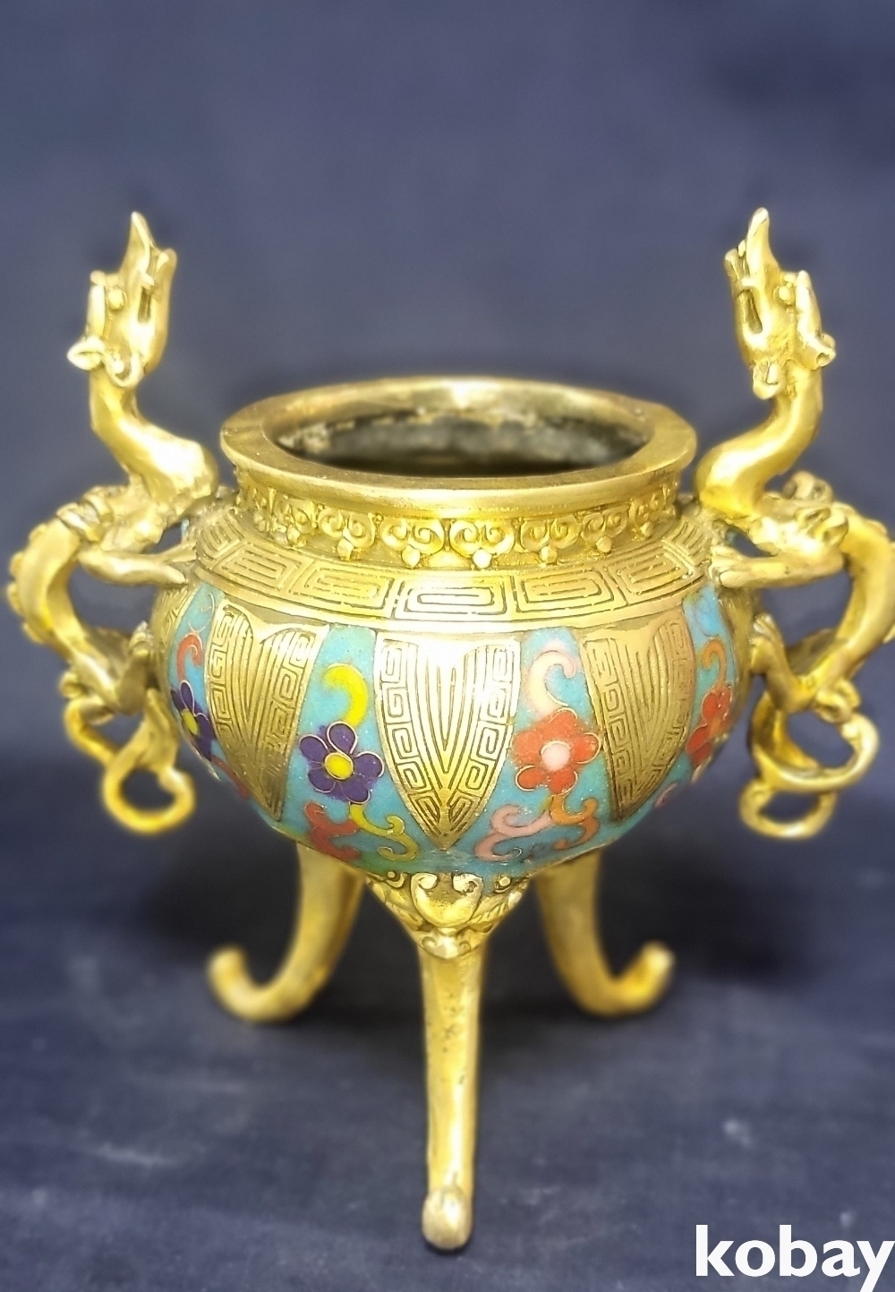 대청건륭 관지 보이는 동태 범랑 화훼 용(龍) 문양 향로입니다,