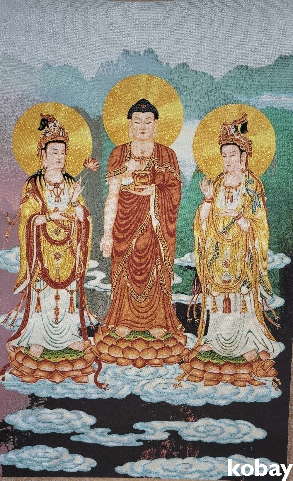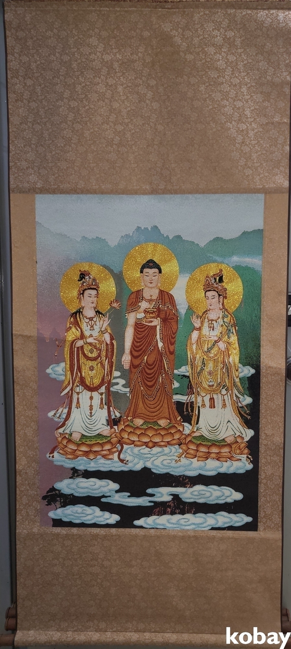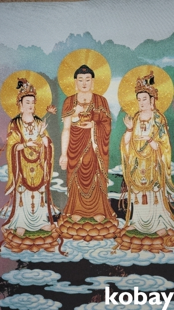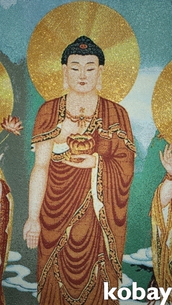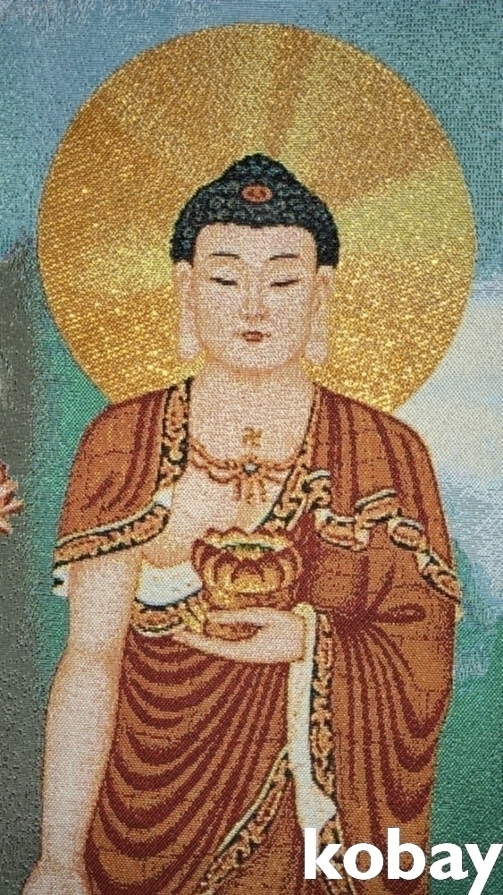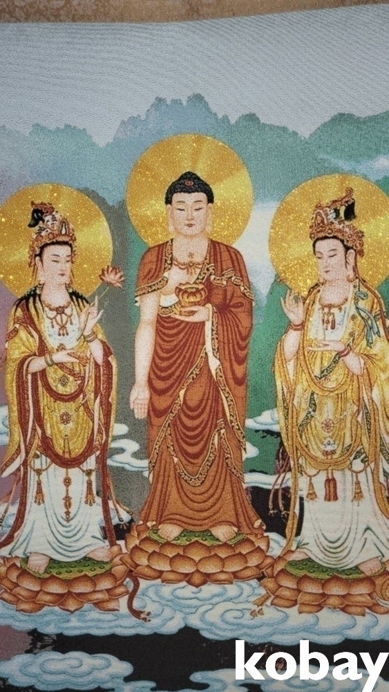 특별하고 두터운 천바닥 위에 불화(佛畵) 족자입니다,