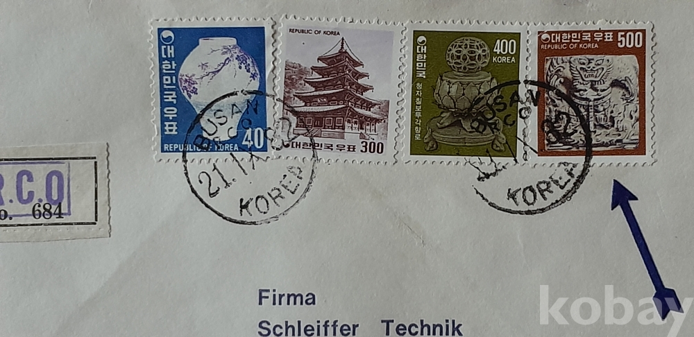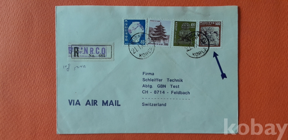 82. 9. 21 부산 영문 원형인 소인 스위스행 실체봉피 입니다.