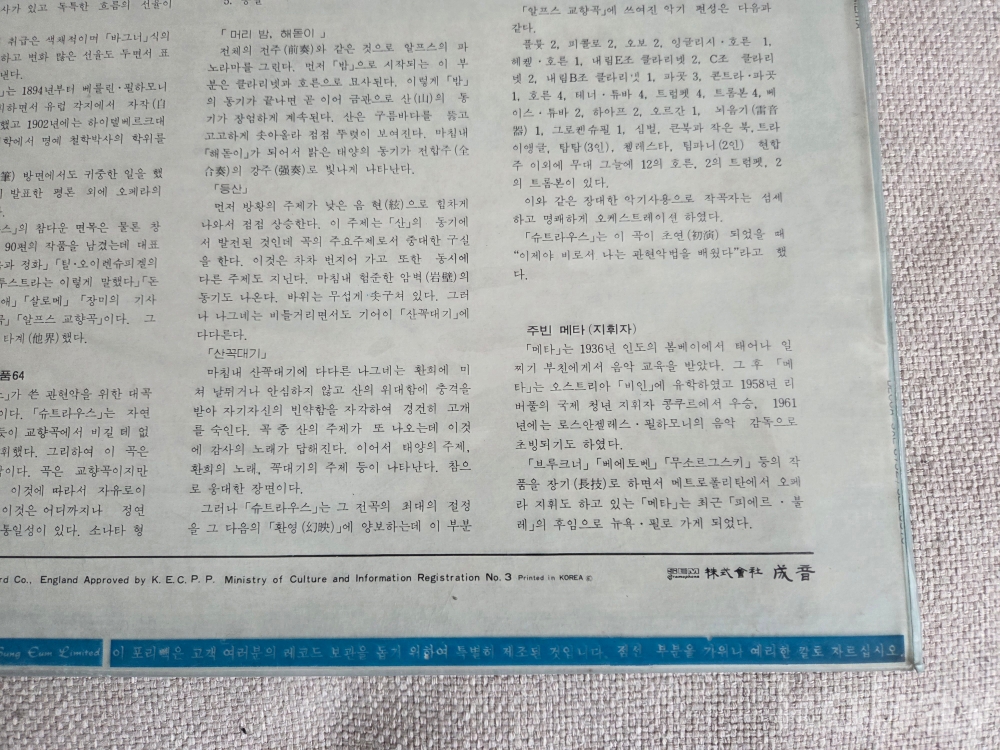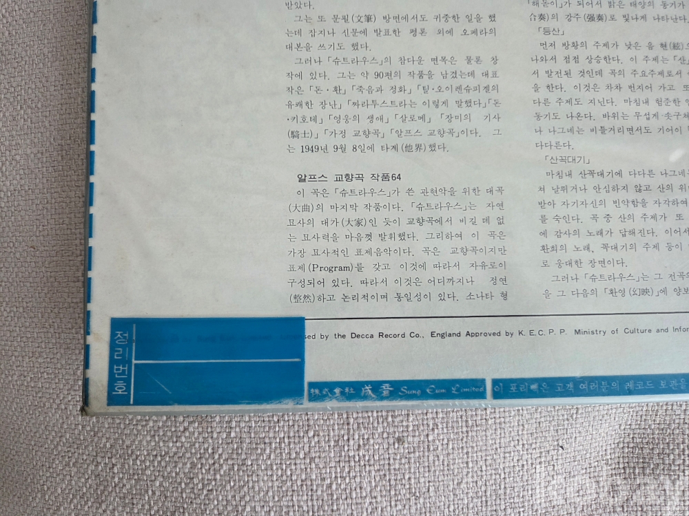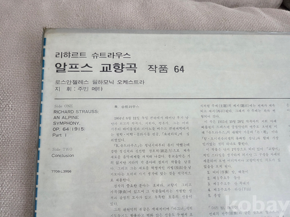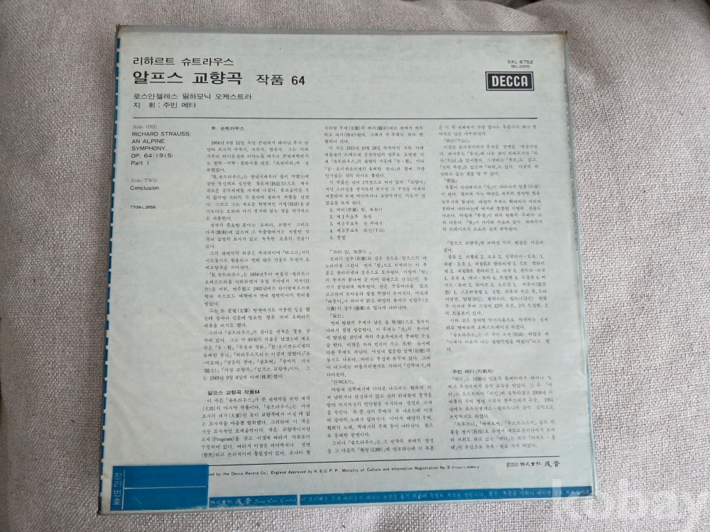 리하르트 슈트라우스의 관현악 대작인 '알프스 교향곡(An Alpine Symphony, Op. 64)'의 LP 음반입니다.