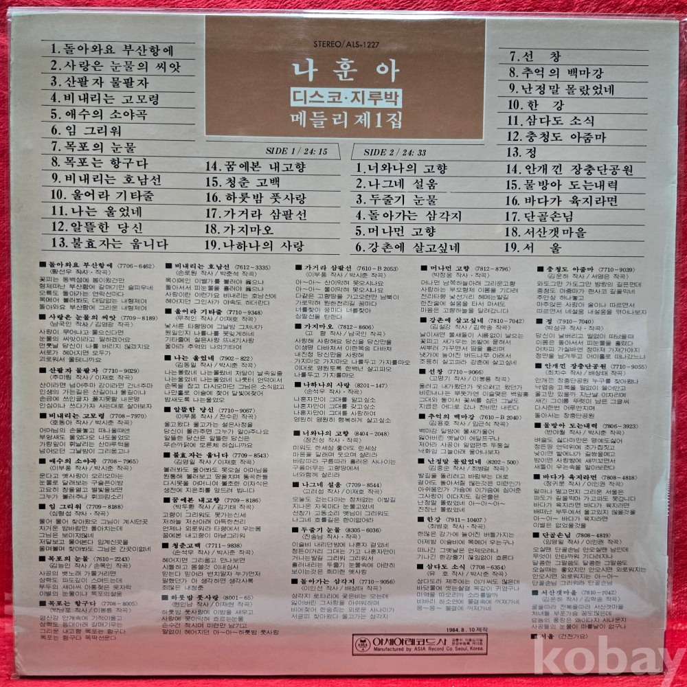 중고 LP인 관계로 취소나 반품도 불가합니다.
