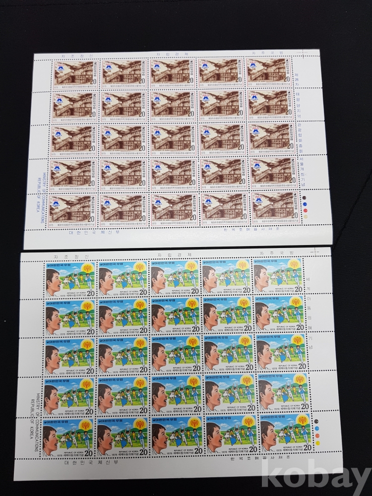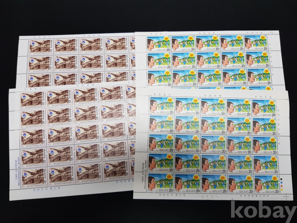 [우표전지모음展] 미사용 1970년대 기념우표 전지 2종 4매 모음 [ 우표 / 우취자료 / 전지 / 한국우표 ] #64(전)-0305 #CO #HH