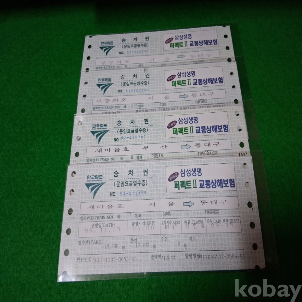 한국철도 광고 새마을,무궁화 승차권각2매 사용제