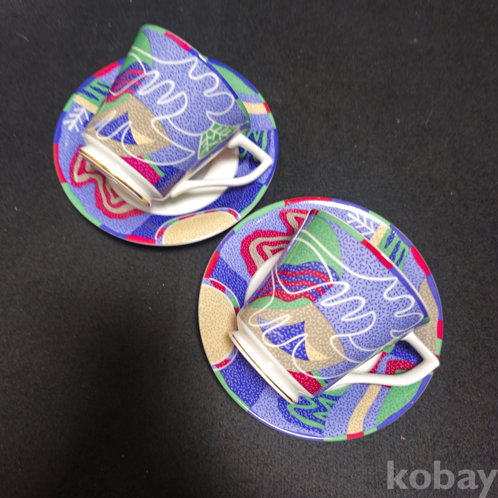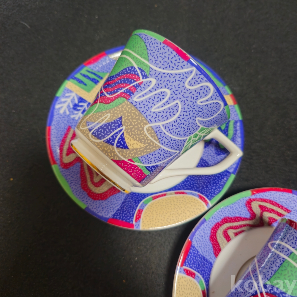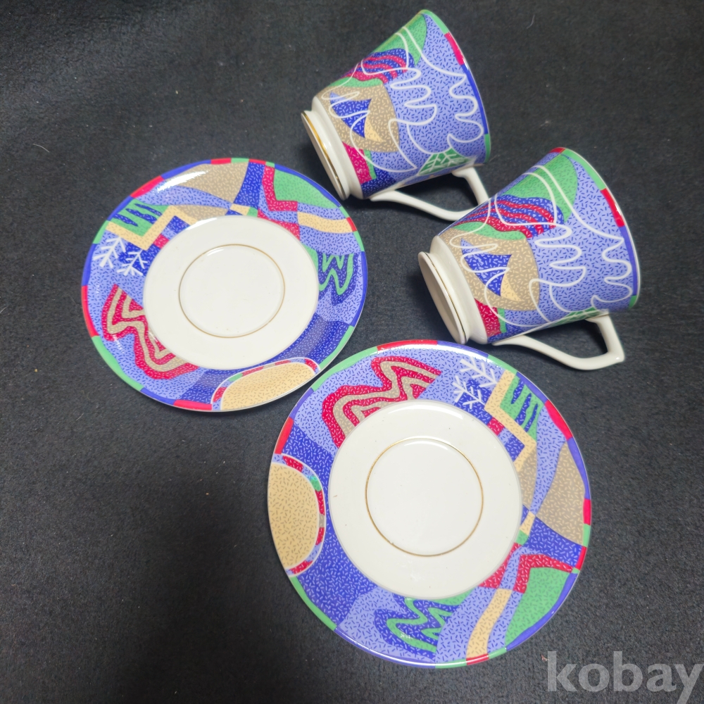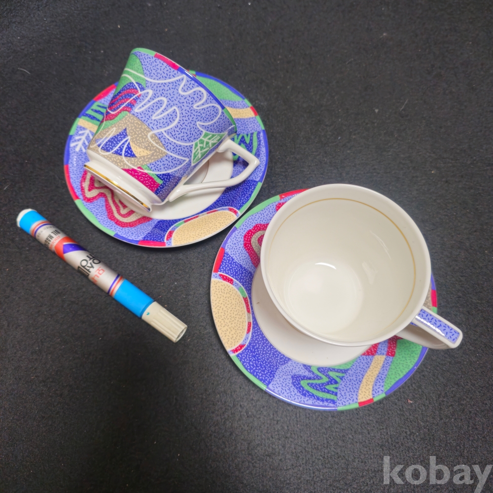 (((도자기커피잔))) 오래전 문양이 이쁜 커플 도자기 커피잔 & 잔받침 (행남자기)