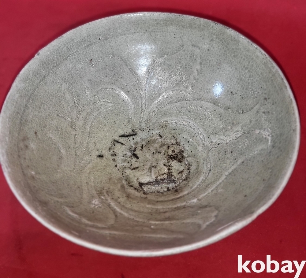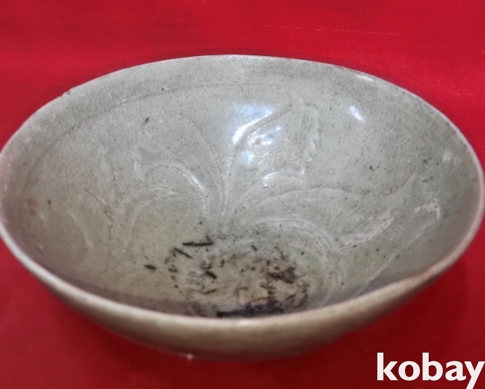 고려청자 식물 잎(葉) 문양 큰 완입니다,