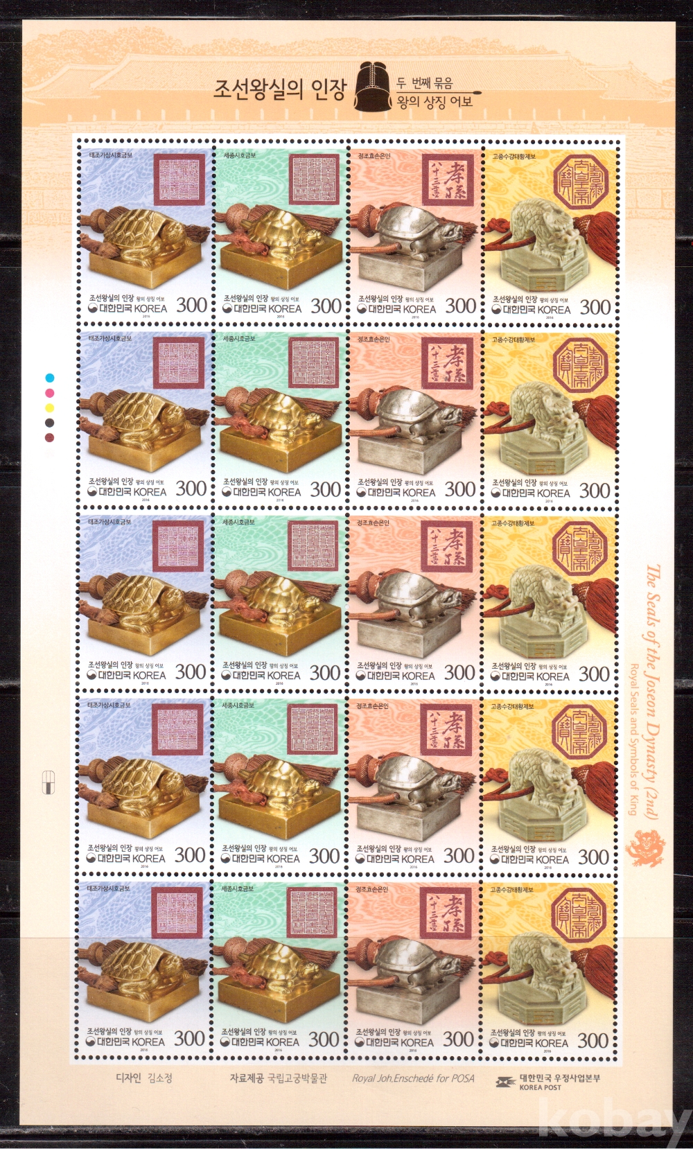 (한국전지) 2016.11.10 조선왕실의 인장(두번째묶음)-왕의 상징어보 sheet of 20 MNH
