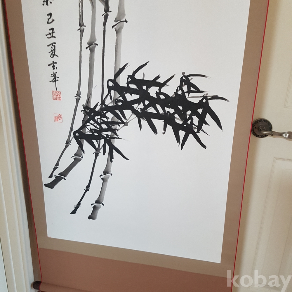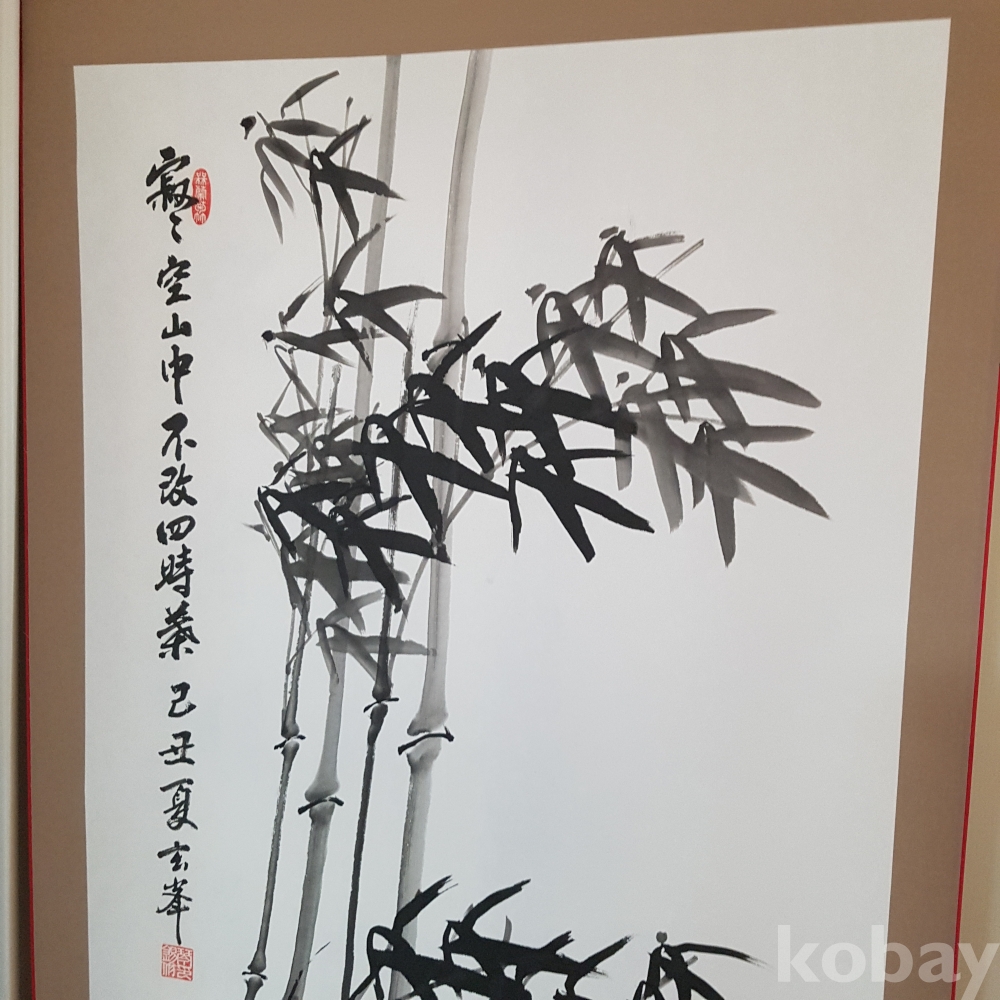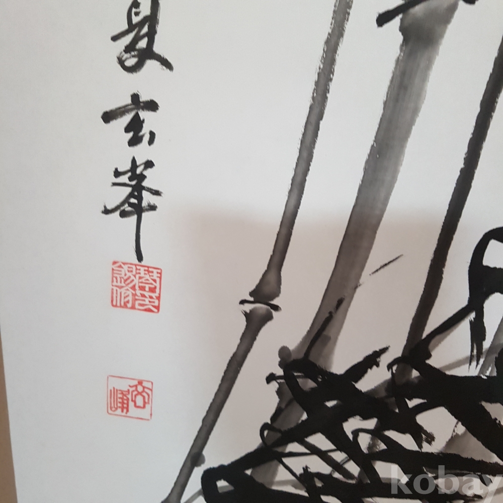 갈필로 유명하신 금석일님 묵죽그림 미사용 족자그림 1점
