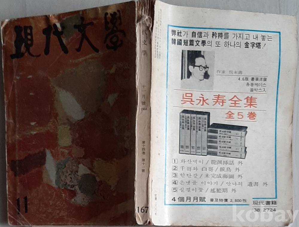 (별도)현대문학1968년11월호 NO167 표지 류경채