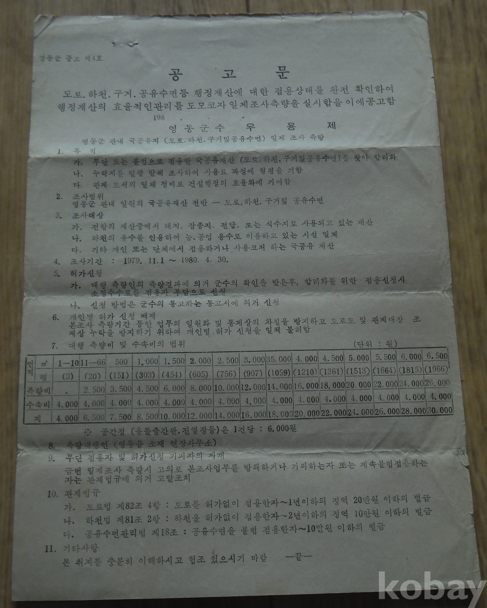 1979년 공유수면점유 측량공고문(영동군)