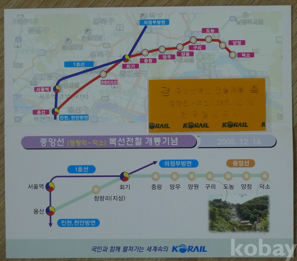 2005년 중앙선(청량리 - 덕소) 복선 전철 개통 기념 승차권
