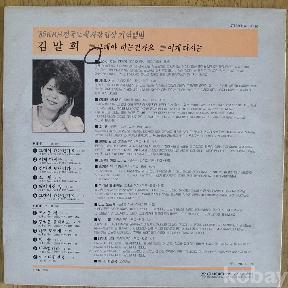 | 자켓상태 | EX : 약간의 마모, 모서리 찢김 존재 | 음반상태 | EX : 재생에 영향 없는 가벼운 기스 존재 | 발매정보 | 초반 | 가사지여부 | 무 |