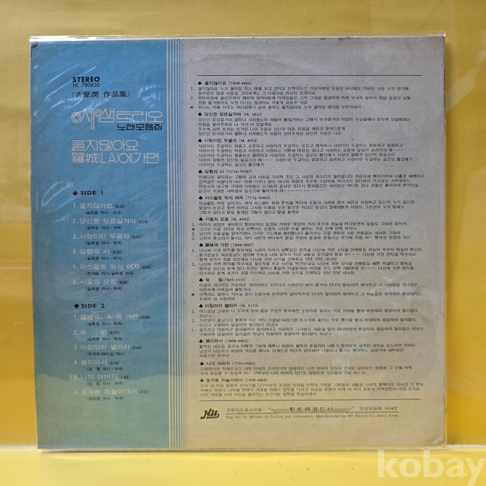 상품명 | 세샘트리오 노래모음집 [ 울지않아요 / 나성(L.A)에 가면 ] |