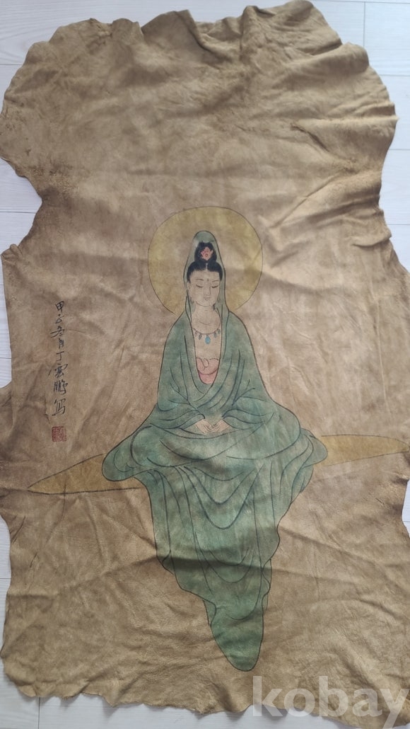 실제 양가죽에 불화를 그린 작품입니다 작품성도 좋고 의미있는 기물입니다 귀한 작품 분양합니다