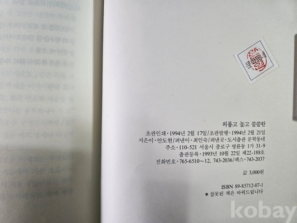 1] 품명 : 문학동네 시집 1 " 외롭고 높고 쓸쓸한 " 안도현 시집 (경북.예천 출생)