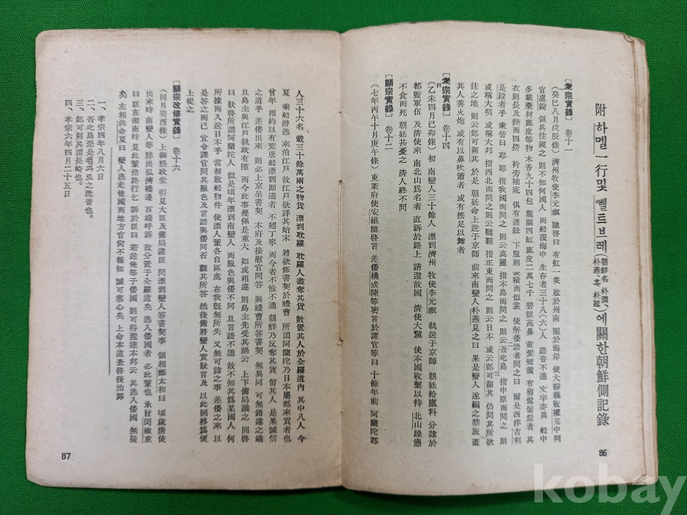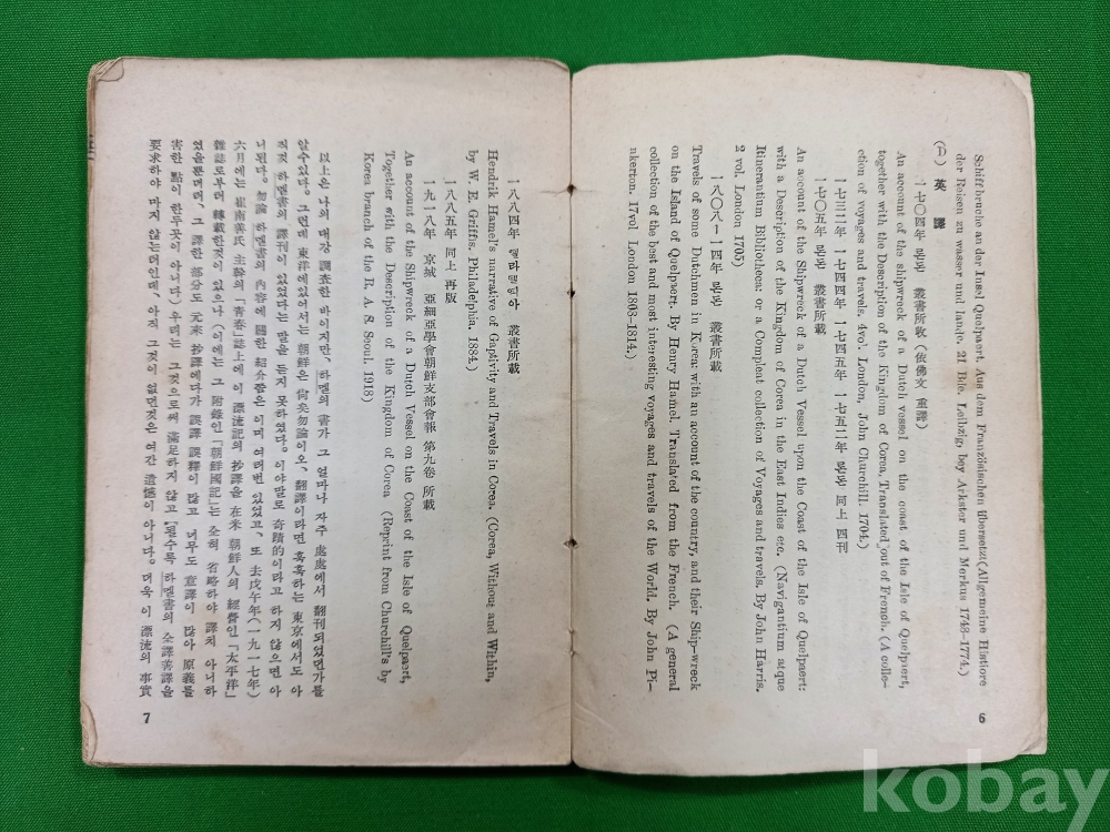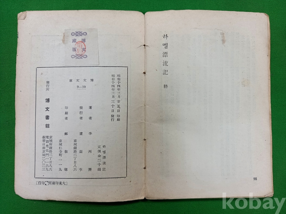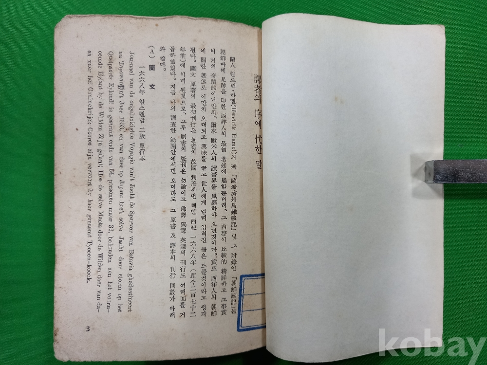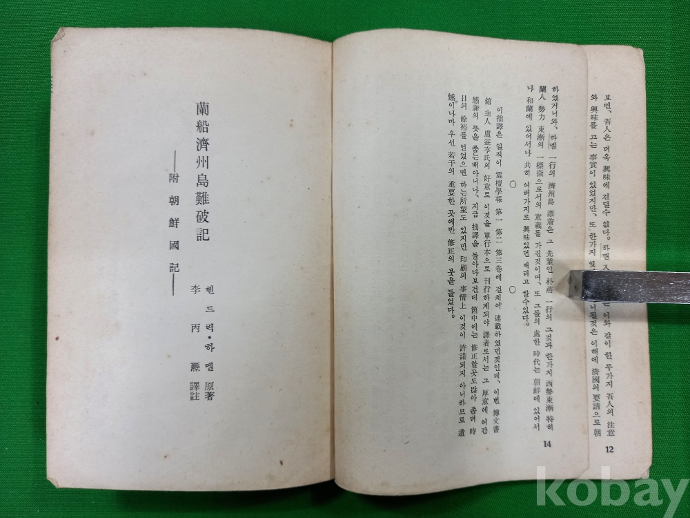 이 책은 1668년 네덜란드에서 출간된 하멜의 기록을 이병도 박사가 영역본과 불역본을 저본으로 삼아 번역한 것입니다. 1934년 학술지 《진단학보》에 먼저 연재되었던 내용을 1939년에 단행본으로 묶어 낸 것이며, 오늘날 우리가 사용하는 '하멜표류기'라는 제목을 정착시킨 최초의 판본이라는 점에서 문헌적 가치가 매우 높습니다.