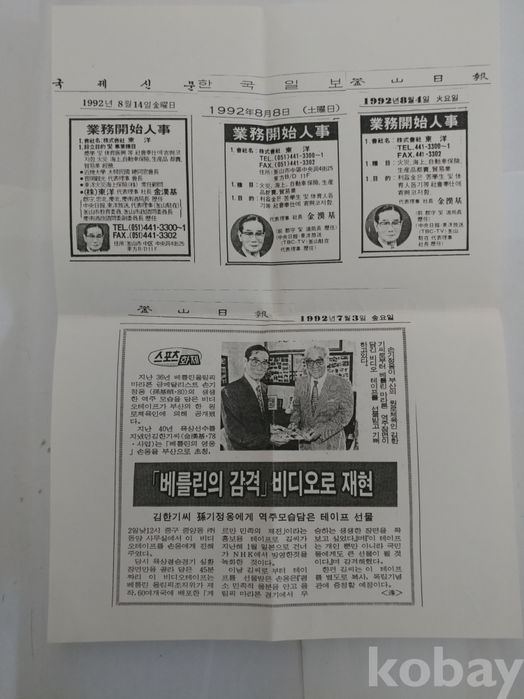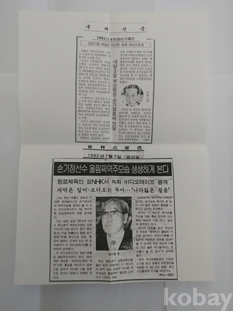 * 손기정선수 [베를린의 감격] 비디오로 재현(1993.7.3 부산일보, 국제신문)