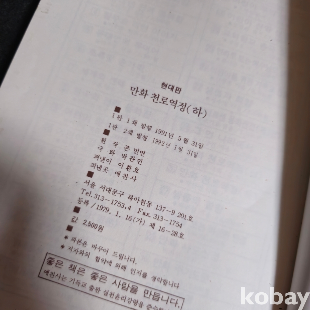 (((만화)) 현대판 만화 - 천로역정 (박찬민 극화) 下편 (1992년 1판 2쇄)