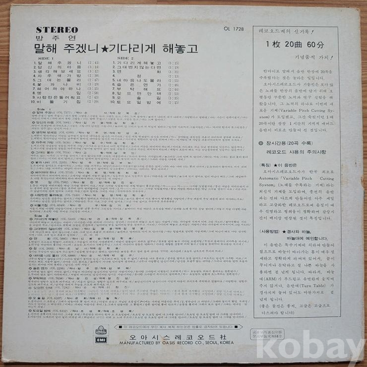 | 자켓상태 | EX : 약간의 마모, 모서리 찢김 존재 | 음반상태 | EX : 재생에 영향 없는 가벼운 기스 존재 | 발매정보 | 초반 | 가사지여부 | 유 |