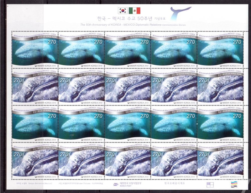 (한국전지) 2012.1.26 한국-멕시코 수교 50주년 sheet of 20 MNH