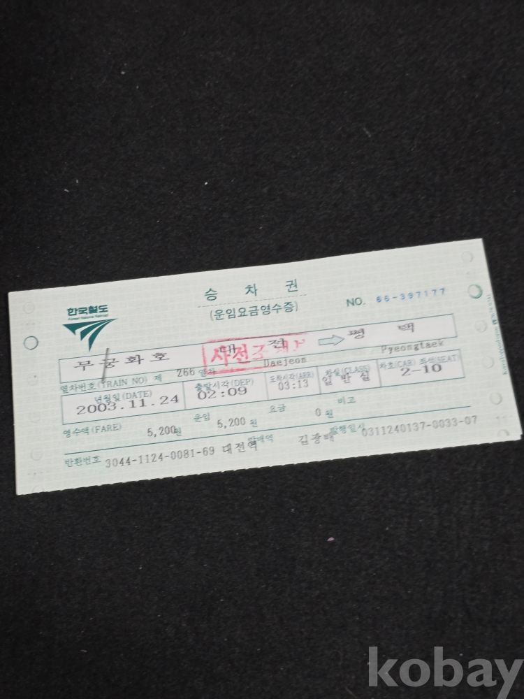 (((철도자료/지하철자료))) 2003년 한국철도 승차권 (무궁화호) (대전-평택) (사전조제분/반환증 2매)