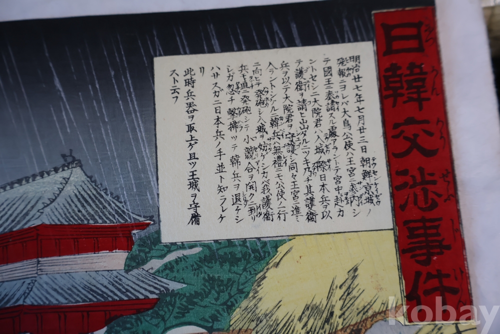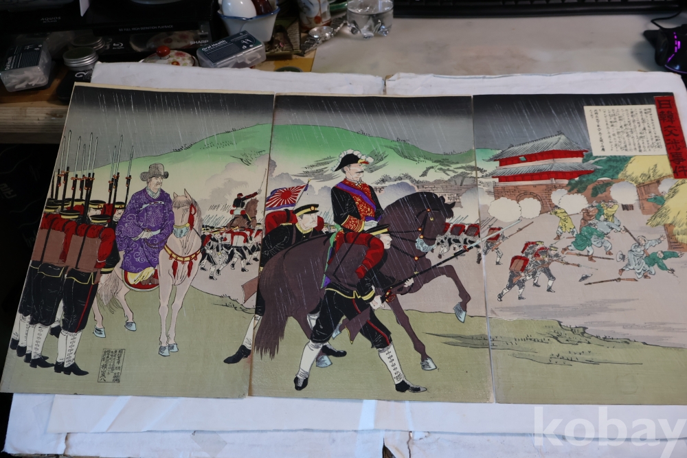 역사적 사실을 알린 일본 목판화 원본 임니다 당시대원군과 일본 군대를 가진 귀한 목판화 원본 임니다 명치27년 1894