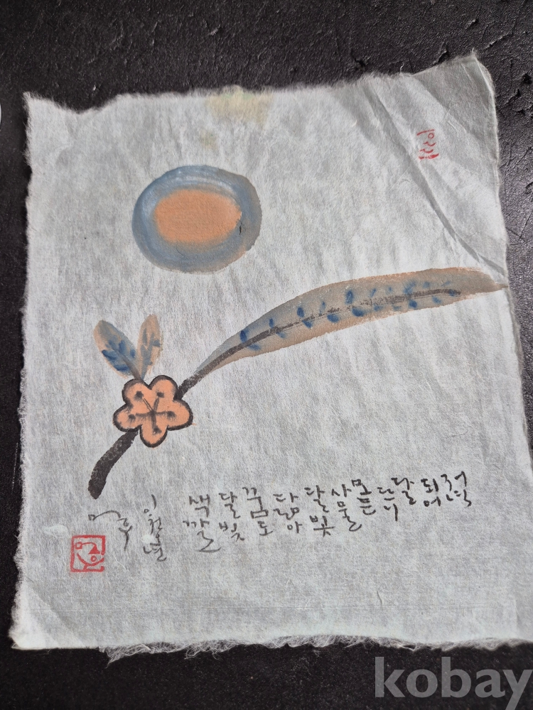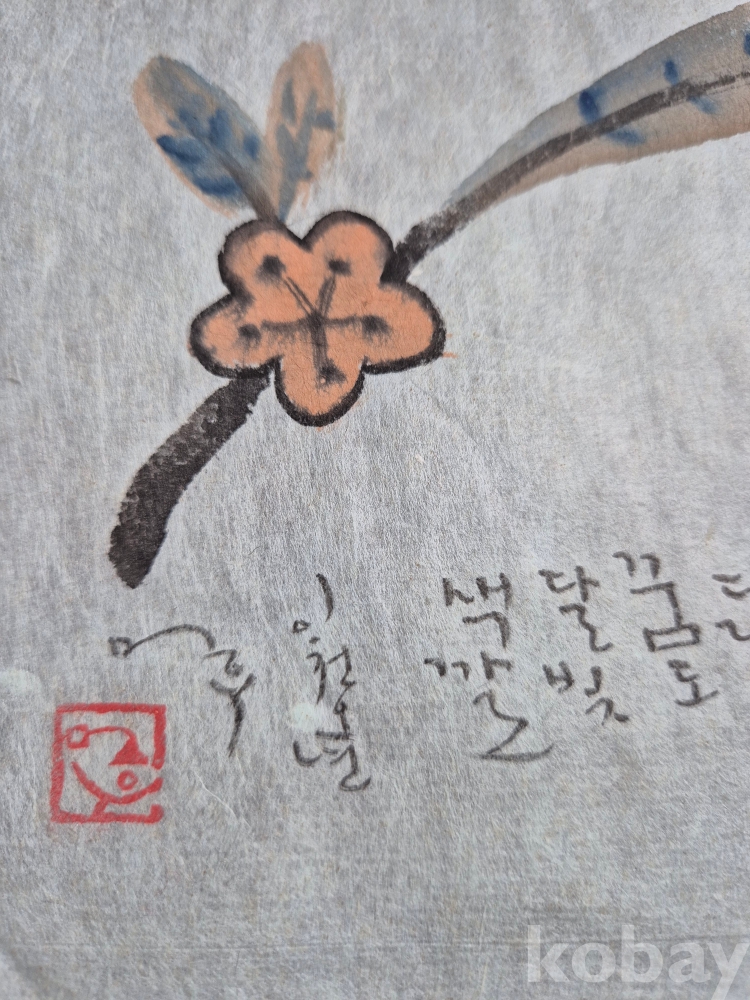 수묵에 색감을 넣은 꽃그림이 예쁜 부드러운 작품입니다.