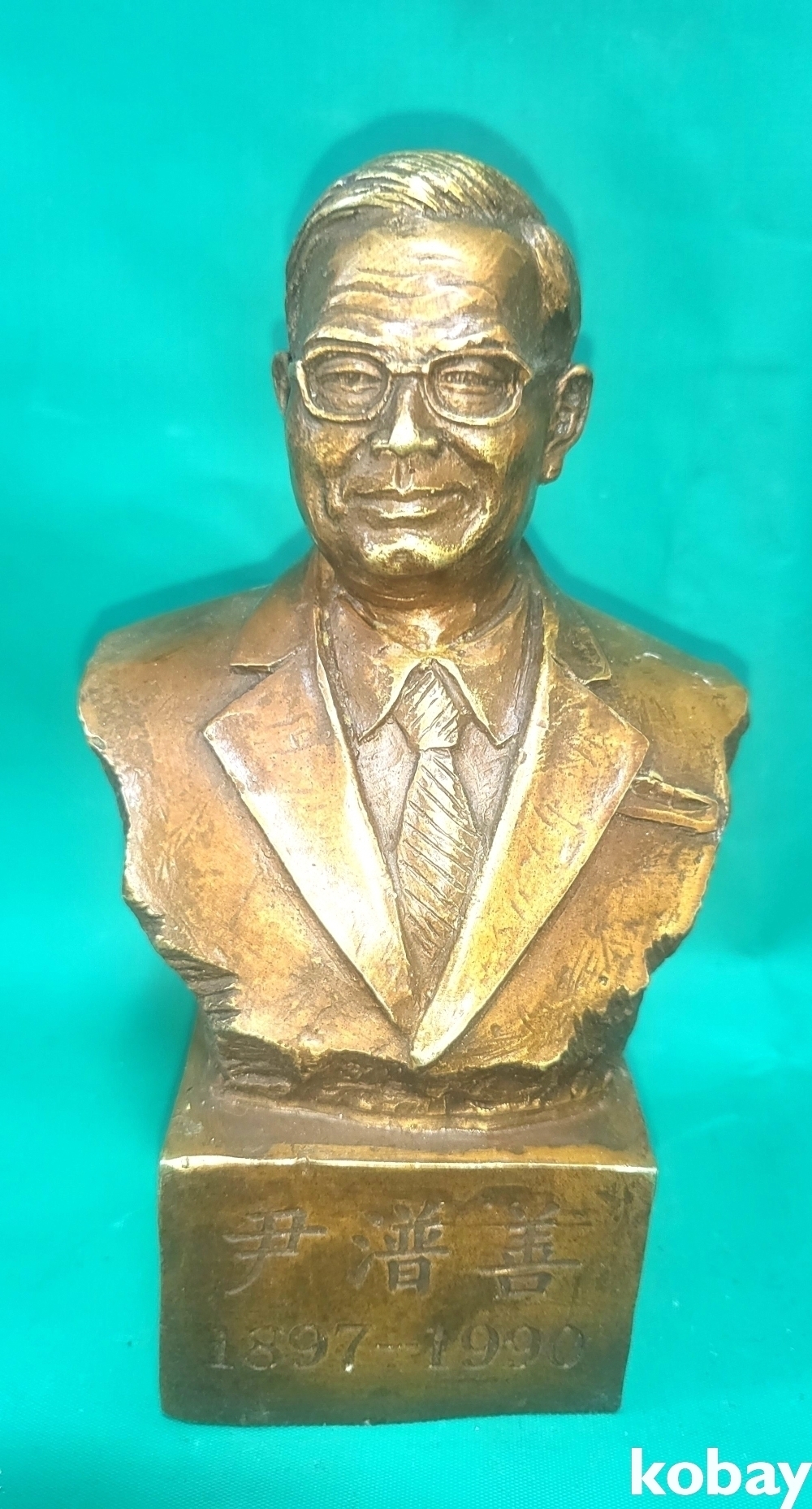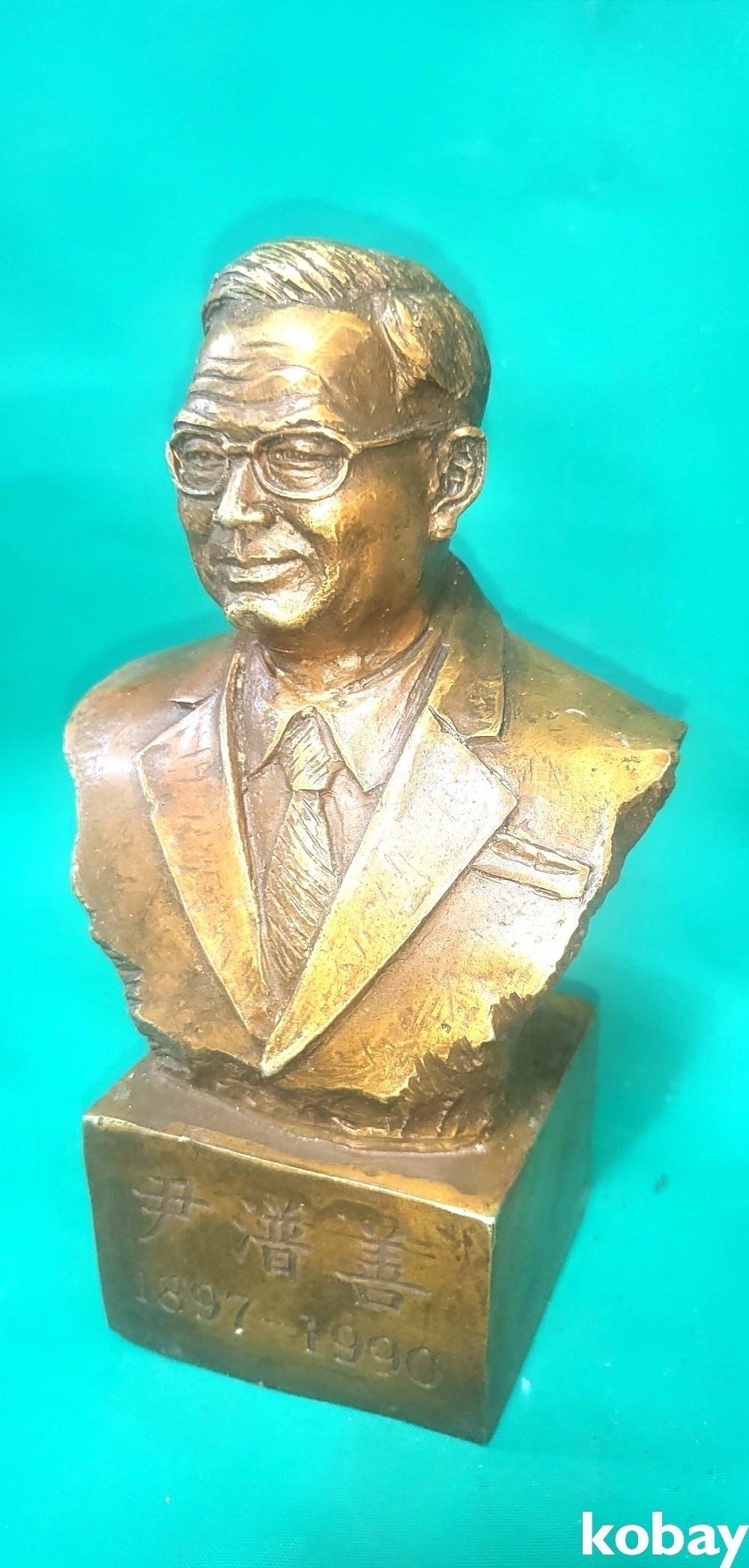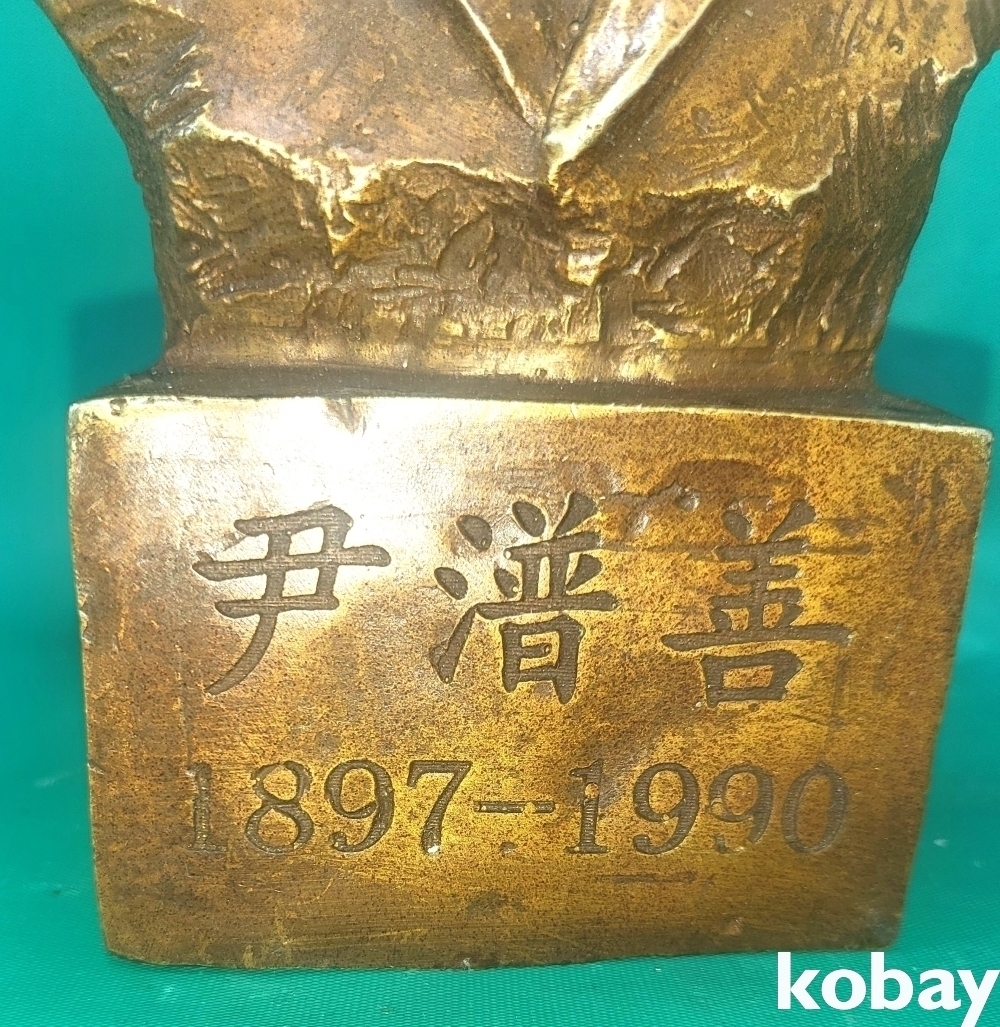 황색 동으로 만든 윤보선 흉상입니다,