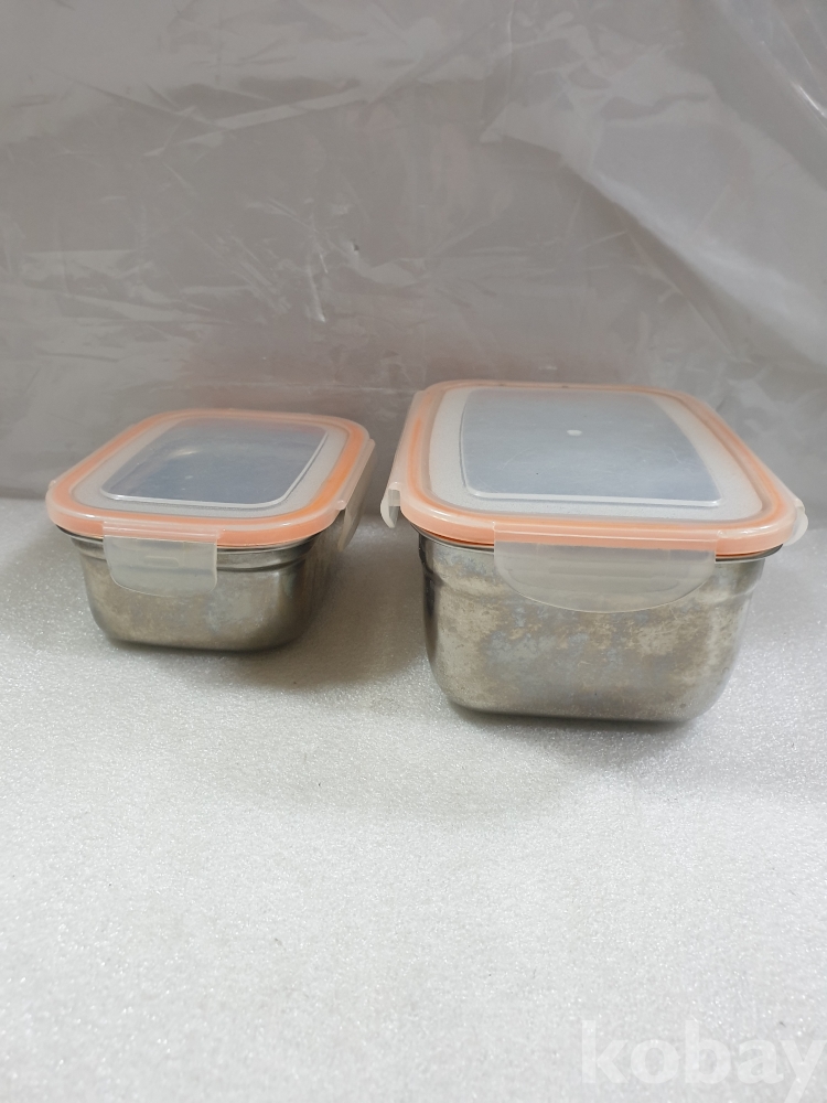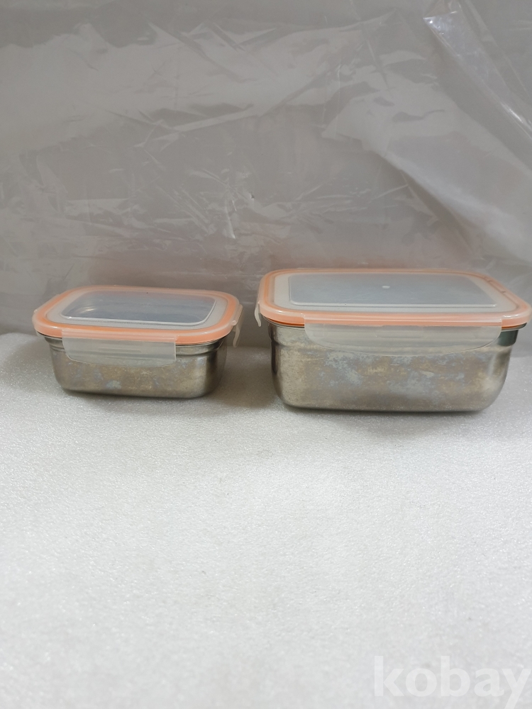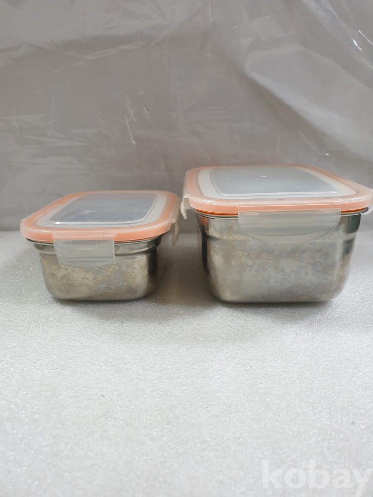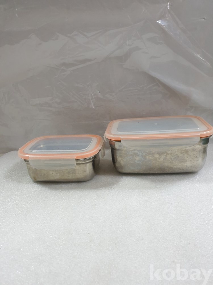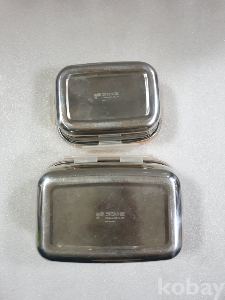 {천원경매}3-2438 키친아트 스텐인레스 찬통 2개 (12*8*5, 15*10*7)