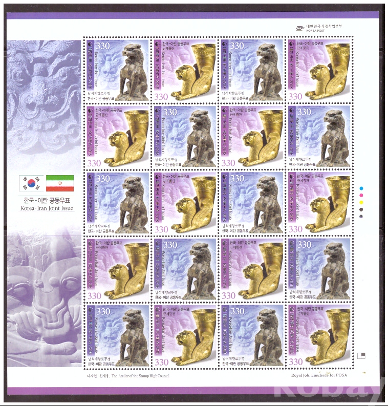 (한국전지) 2018.10.23 한국-이란 공동우표 sheet of 20 MNH