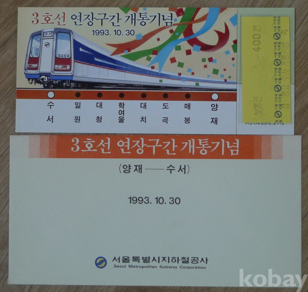 1993년 지하철 3호선 연장 구간 개통 기념 승차권