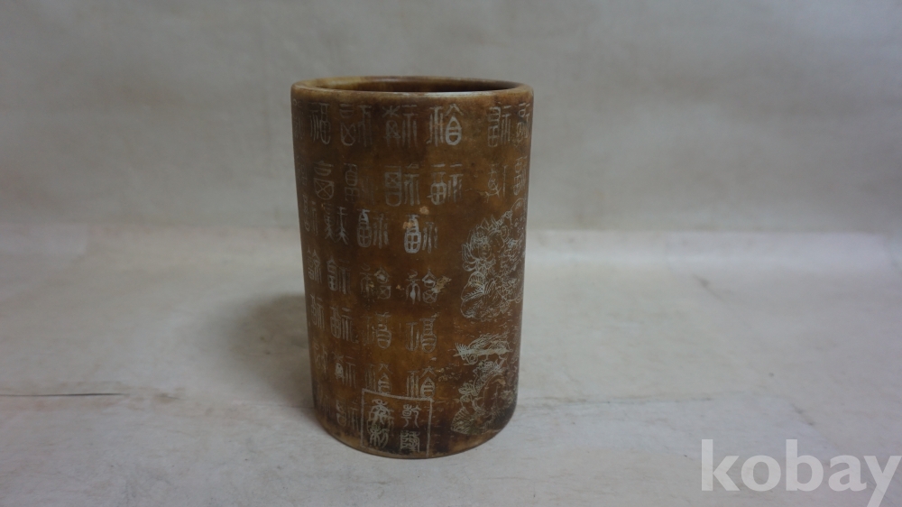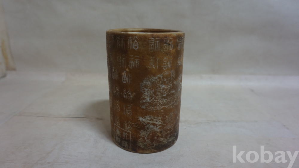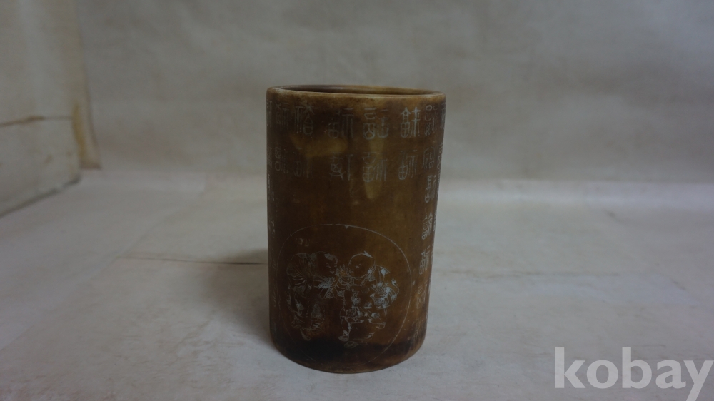 ◈◈청대../황유 글자.동자문,ㅡ''원형 필통 한점◈◈