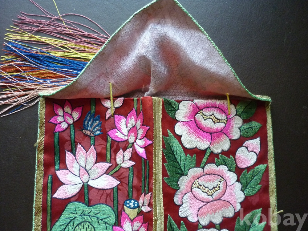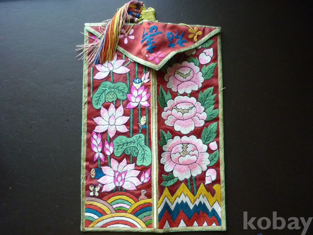 모란, 연꽃문 자수 필낭