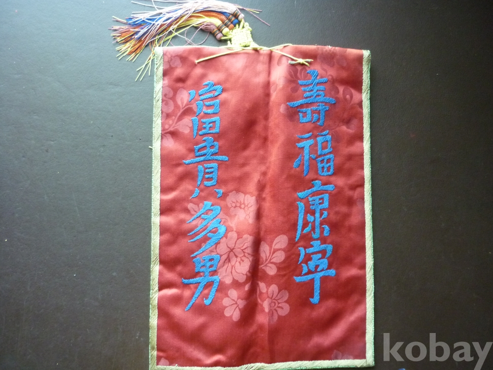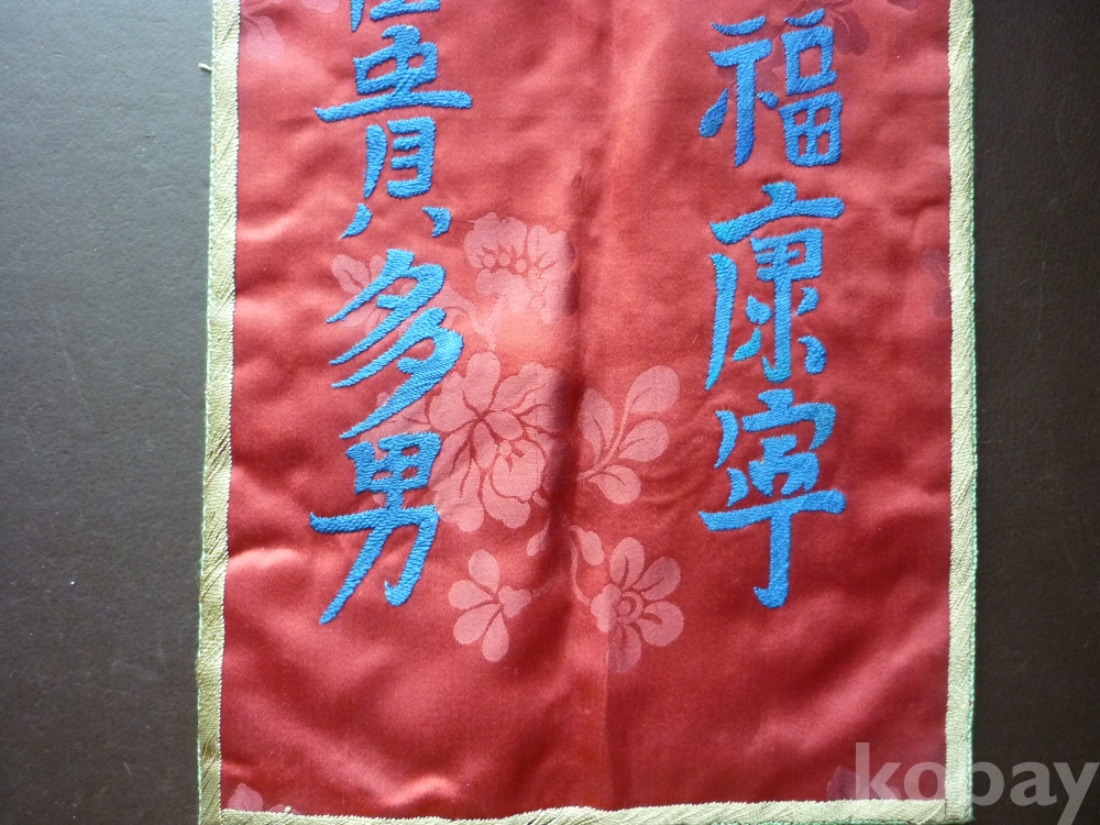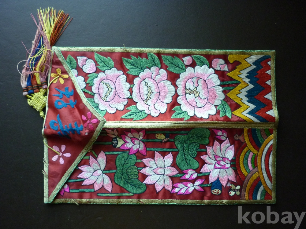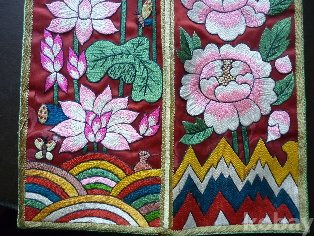 부귀다남, 수복강령의 상서로운 문자로 수를 놓고 모란, 연꽃의 문양을 도안하였습니다.
