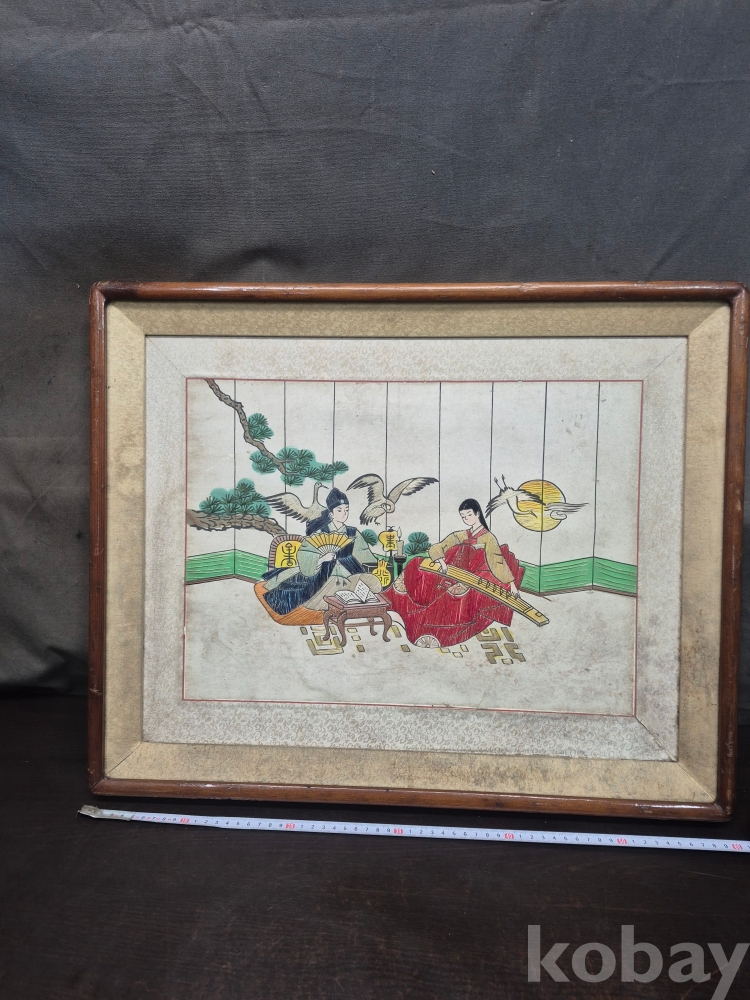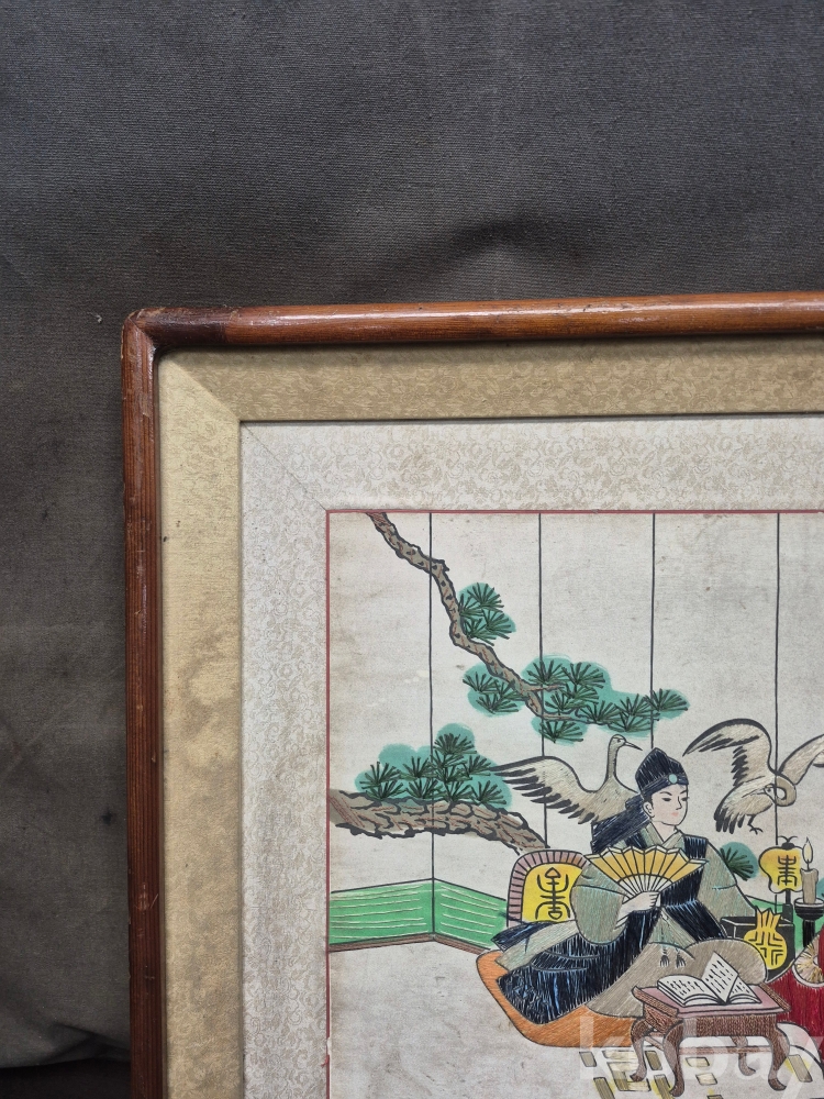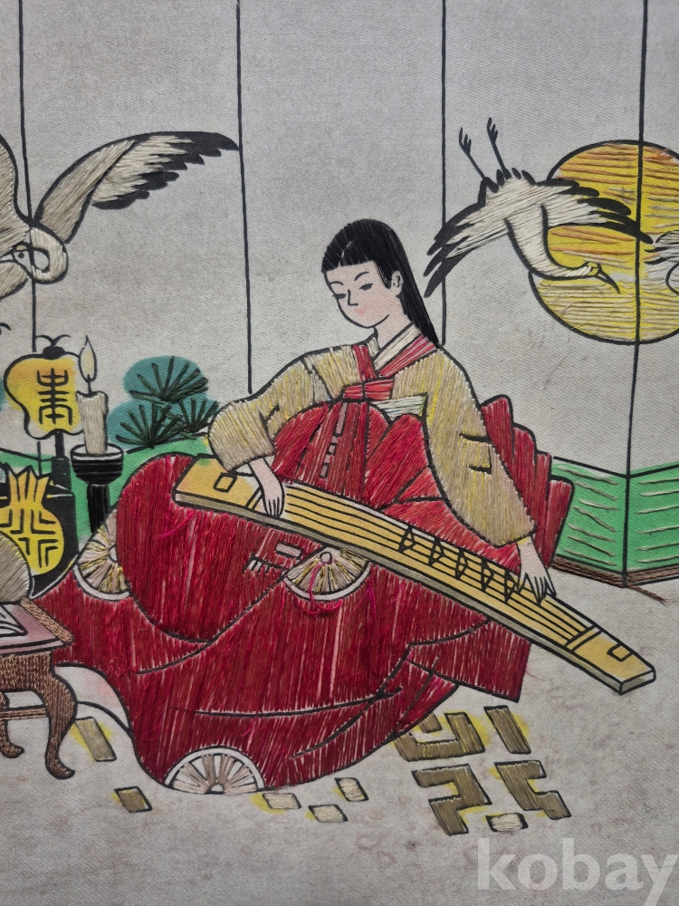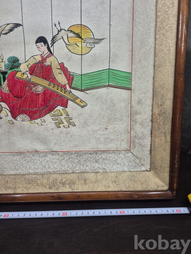 1970년대 이몽룡과 춘향이를 묘사한 실로 만든 작품 원목에 수를 놓아 만들어져 있어요 60*48*4